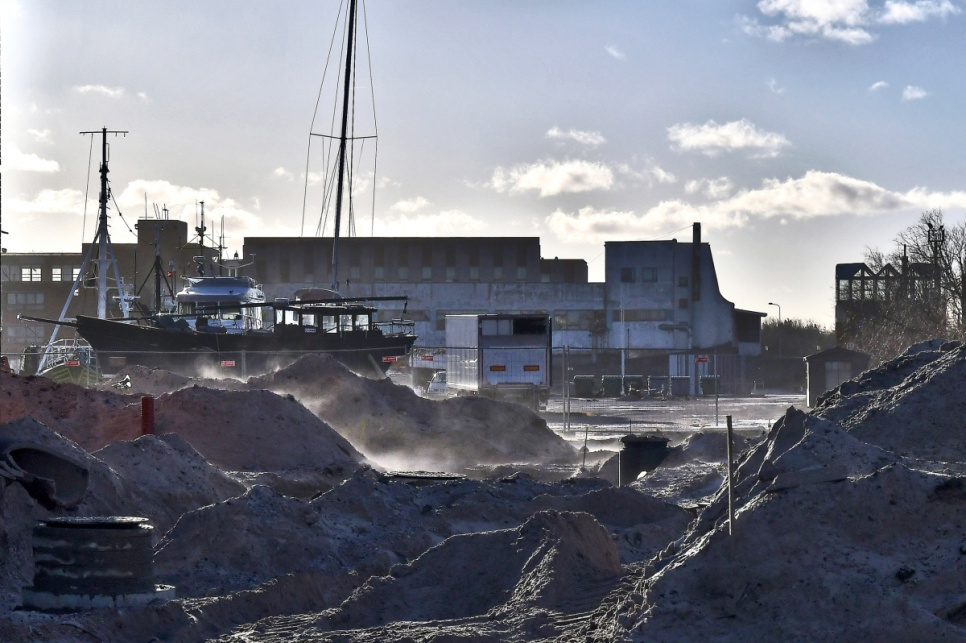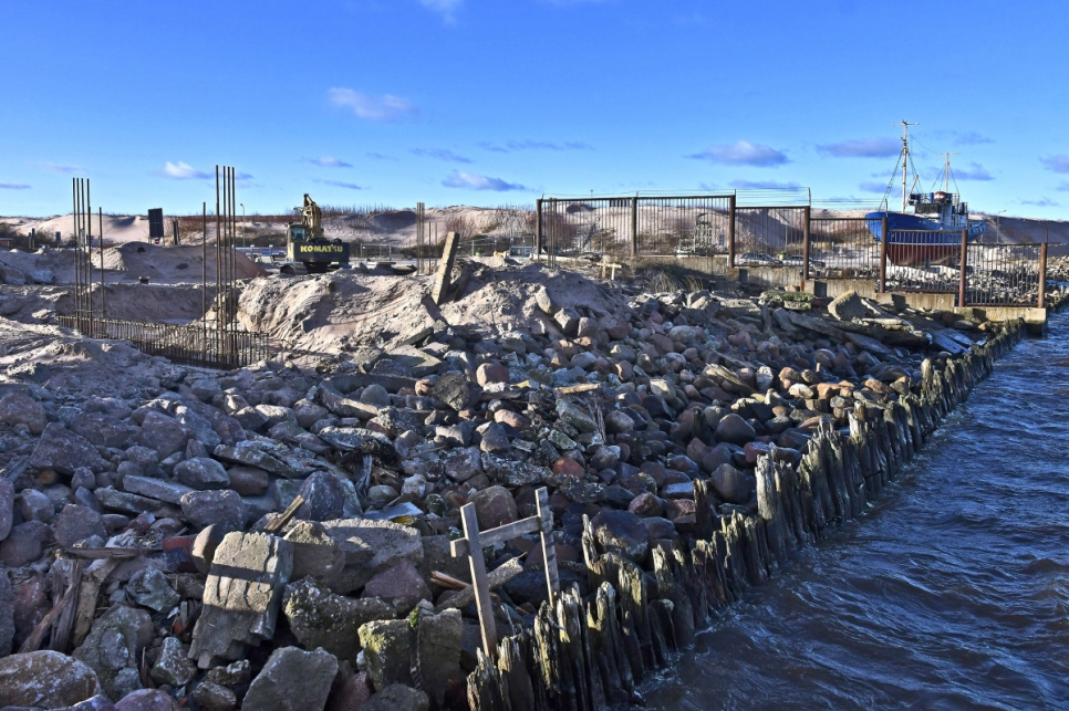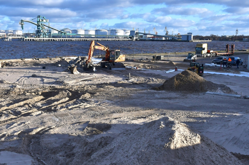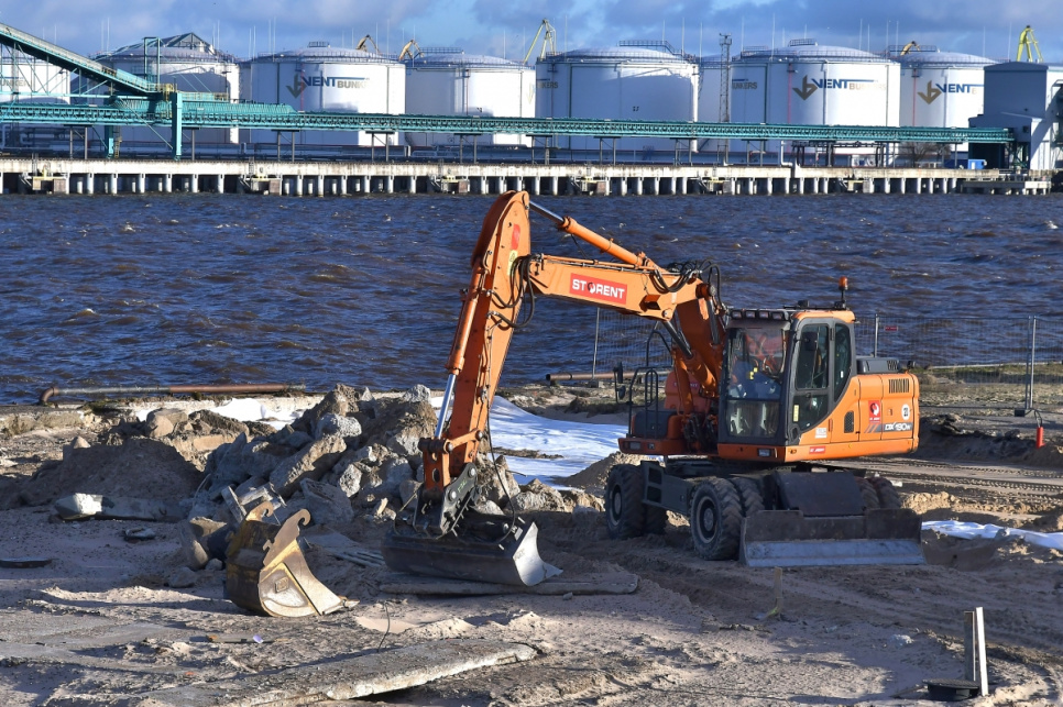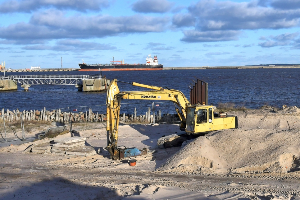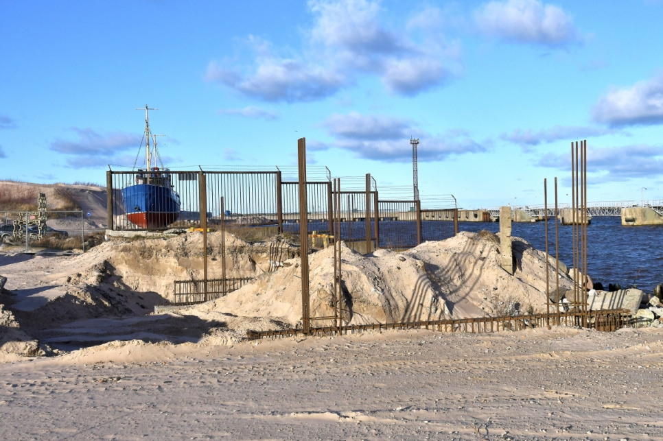 Pie Ventspils ostas Dienvidu mola notiek pievedceļa būvniecības darbi. Pēc jaunā ceļa izbūves uz Dienvidu molu varēs nokļūt gan pa Medņu ielu, gan pa jauno pievedceļu, kas vedīs gar vecajām saldētavas ēkām - kāpas, kur atrodas skatu platforma, otru pusi.