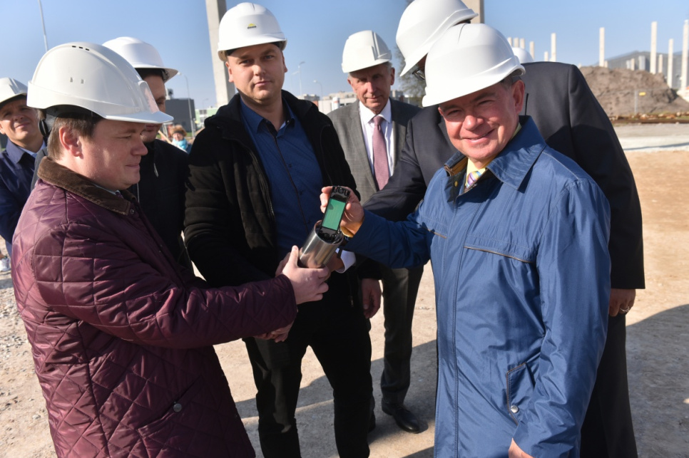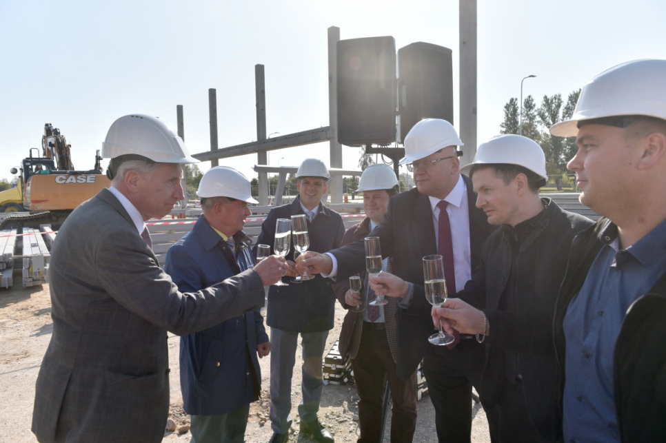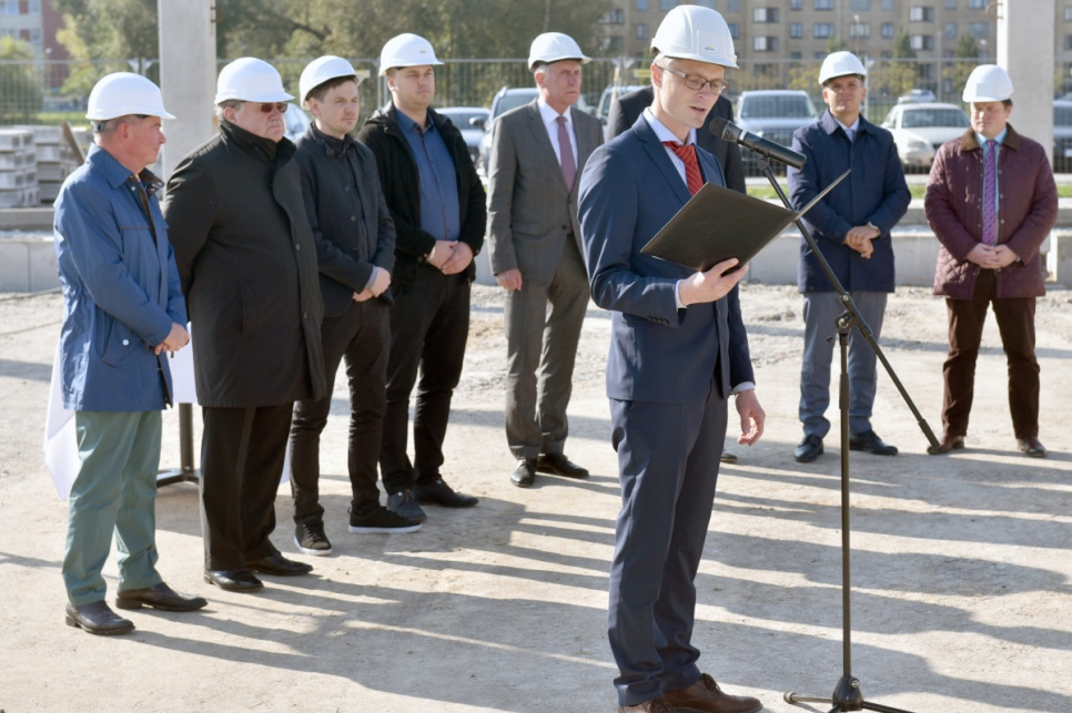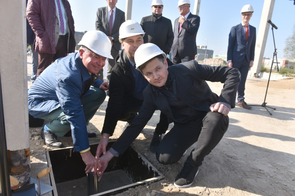 Kapsulu ar vēstījumu nākamajām paaudzēm topošās ēkas nr. 7 pamatos iemūrē pašvaldības vadītājs Aivars Lembergs un ēkas nomnieka – uzņēmuma Quality Jobs – pārstāvji.