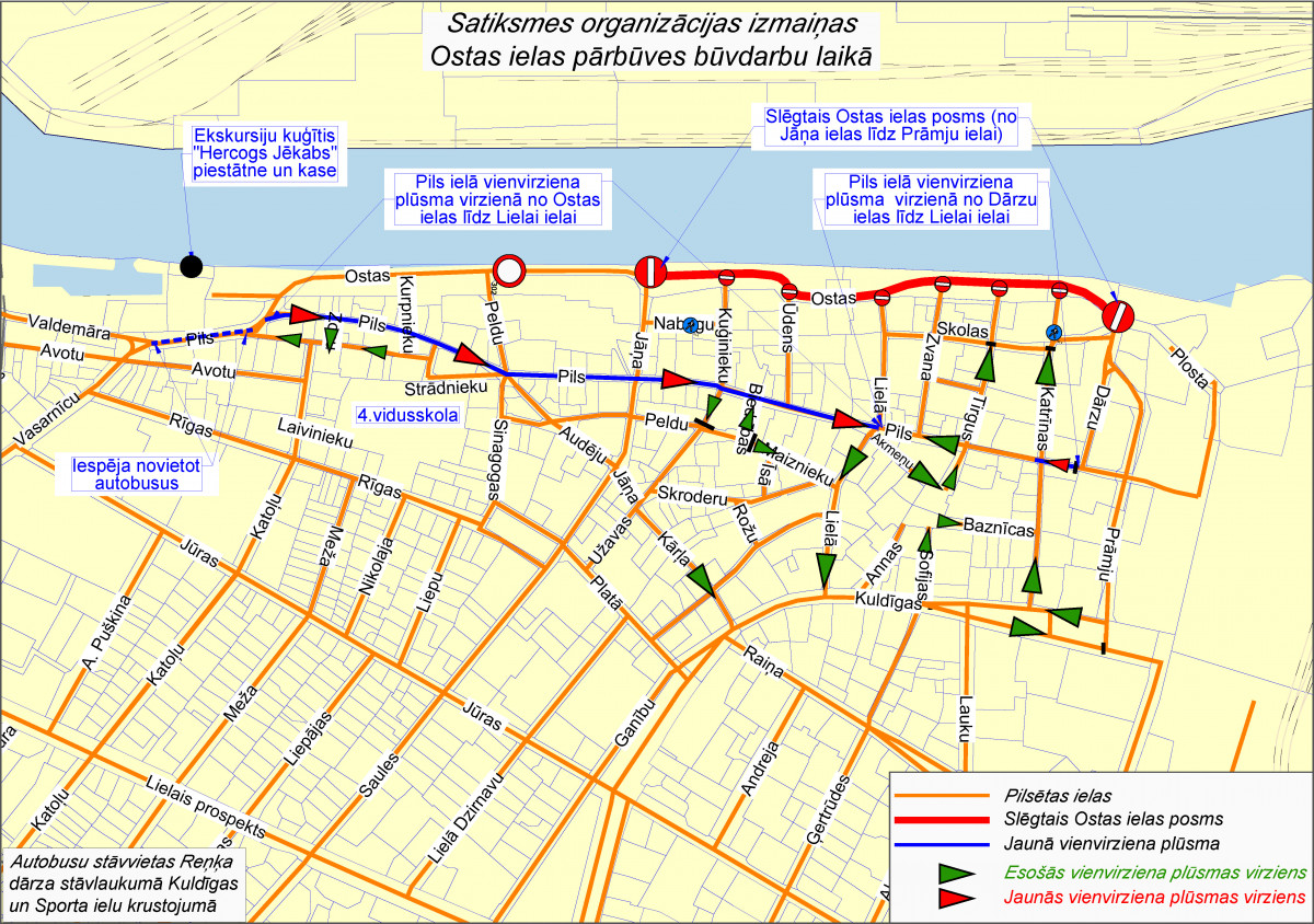 7. jūnijā plānots sākt Ostas ielas posmā no Jāņa ielas līdz Dārzu ielai pārbūves darbus. Būvdarbu laikā satiksmei tiks pilnībā slēgts pārbūvējamais posms, un Pils ielā posmā no Ostas ielas līdz Lielajai ielai satiksme būs atļauta tikai vienā virzienā.