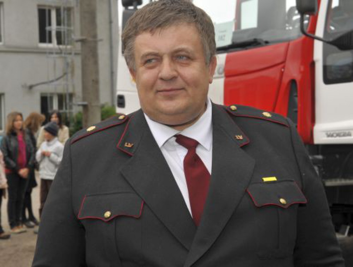 Valsts ugunsdzēsības un glābšanas dienesta Ventspils daļas komandieris Andris Šulcs stāsta par mācībām ostā.