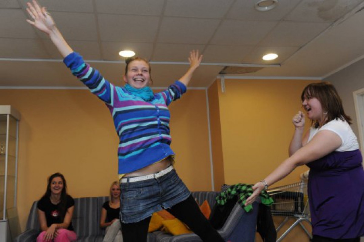 Ventspils Augstskolas teātra sporta aktīvisti pamazām kļūst par vienotu kolektīvu.