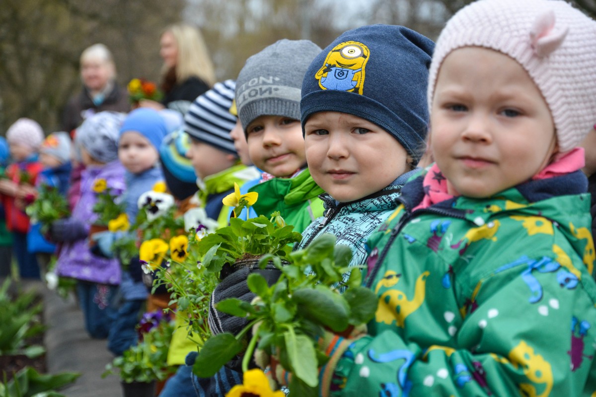 28. aprīlī pirmsskolas izglītības iestādes „Saulīte” audzēkņi ar skolotājām un auklītēm pulcējās iestādes pagalmā pie lielās puķu dobes, lai kopīgi stādītu atraitnītes.