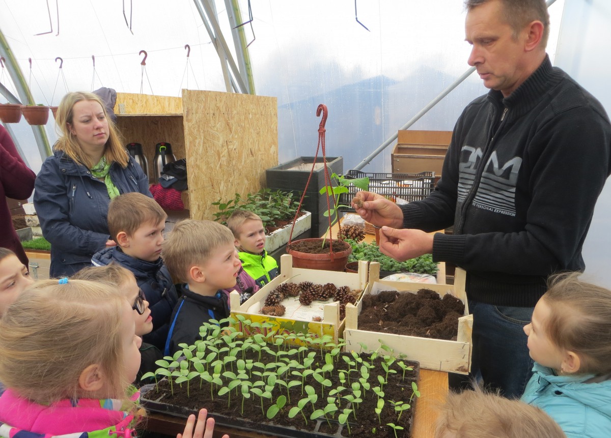 30. martā sākās projekta pirmais posms, kurā piecgadīgie bērni no grupas “Mārītes” devās ciemos uz stādu audzētavas “Sarmas 7” lielajām siltumnīcām. Mazos bērnus sagaidīja siltumnīcu saimnieks Nils Taube, lai kopīgi uzsāktu darbu pie stādīšanas.