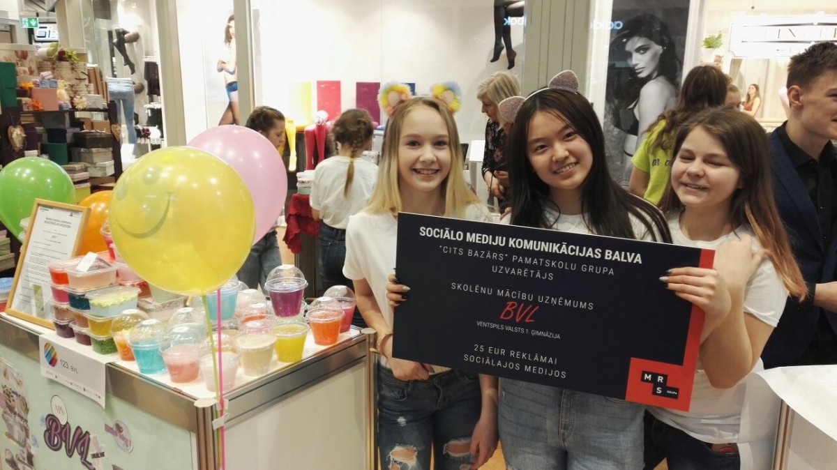 Skolēnu mācību uzņēmumu “BVL” dibinājušas trīs 7. klases skolnieces (Aleksandra Ķergalve, Estere Lauska, Jiaji Liana) un viņu ražotā prece ir bērnu un jauniešu vidū populārais slaims – elastīga masa rotaļām vai stresa noņemšanai. Uzņēmums pamatskolu grupā saņēma balvu par komunikāciju sociālajos tīklos, kā arī balvu nominācijā “Komerciālākais produkts”. Un par komerciālo veiksmi liecina fakts, ka tirdziņā uzņēmums pārdeva necerēti daudz – ap 100 preču.