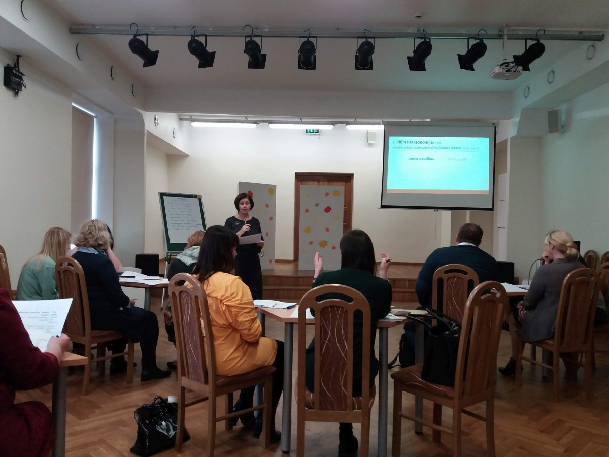 Pirmā nodarbība tika aizvadīta un tās laikā skolotāji varēja iepazīties ar kolēģiem un Metodiskā dienesta konsultantiem, uzzināt, kas sagaida turpmāk un kopīgi noskaidrot, kas ir laba mācību stunda un kā formulēt konkrētu, izmērāmu, sasniedzamu, nozīmīgu un noteiktā laikā paveicamu stundas sasniedzamo rezultātu.