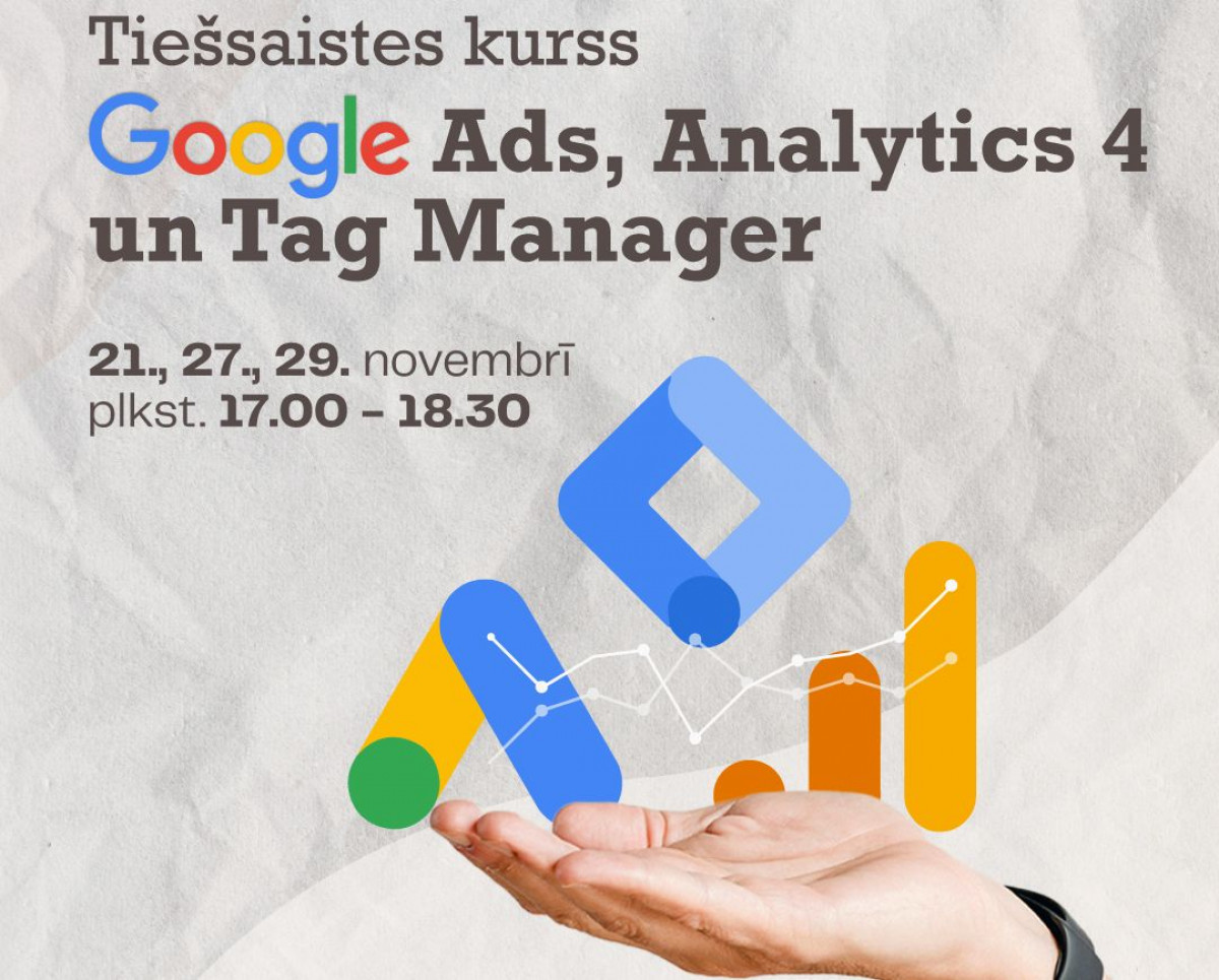 Aicina tiešsaistē apgūt kursu ''Google Ads, Google Analytics 4 un Google Tag Manager pamati''