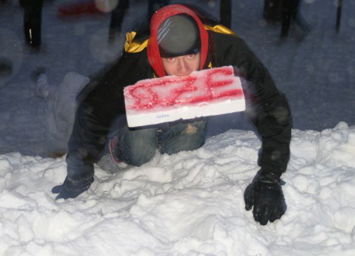 Tajā piedalījās 30 studenti, kas tika sadalīti 5 komandās. Visām komandām vajadzēja veikt 6 stafetes un 1 kopēju posmu: 1. "Piepildi glāzīti" –pēc iespējas ātrāk ir jāizkausē tāds sniega daudzums, lai piepildītu plastmasas glāzīti ar ūdeni; 2. "Plēves šļūkšana" - visa komanda šļūc lejā no kalna ar plēvi pēc iespējas vairāk reižu, lai iegūtu papildpunktus; 3. "Lielākā sniega čupa" - dalībniekiem ar sasietām kājām no konkrētas teritorijas jāsavāc sniegs, lai izveidotu augstāko sniega čupu 2 min laikā; 4. "Uz ragaviņām" - viens no komandas (uz maiņām) velk pārējos apkārt figūrām, veicot noteiktu trasi; 5. "Zeķu stafete" - komandas 2 pārstāvjiem jāveic maršrutu bez apaviem, kamēr pārējie veido ceļu, liekot par pamatu savas drēbes; 6. "Skrējiens kalnā" - komanda pievar kalna nogāzi, pa vienam skrienot augšā pēc objekta un nesot to lejā, kamēr otrs skrien kalnā, likdams objektu atpakaļ vietā; 7. "Atrodi burtus un sastādi teikumu" - kad visas stafetes bija izietas, komandām tika dots pēdējais uzdevums - meža teritorijā kokos atrast 19 burtus un sastādīt teikumu.