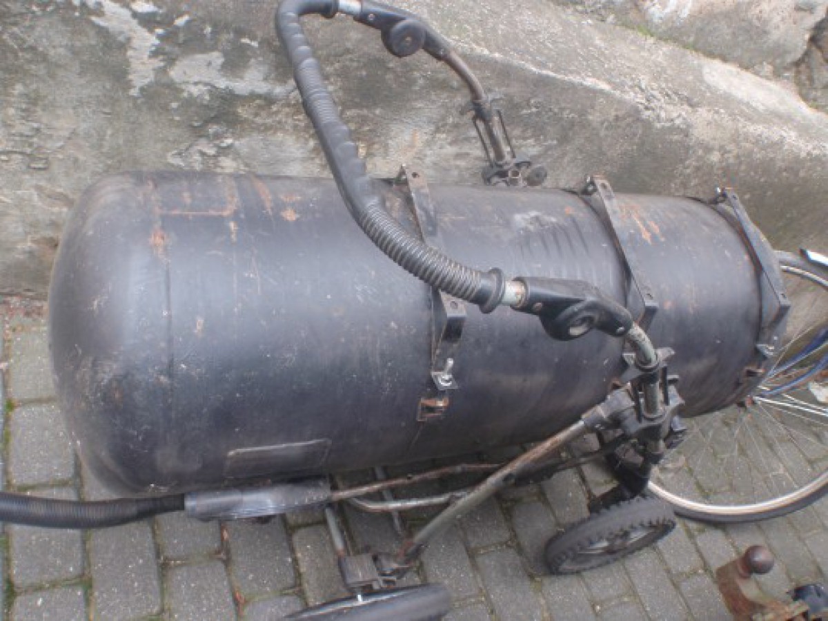 Atrasts automašīnas gāzes balons un velosipēds