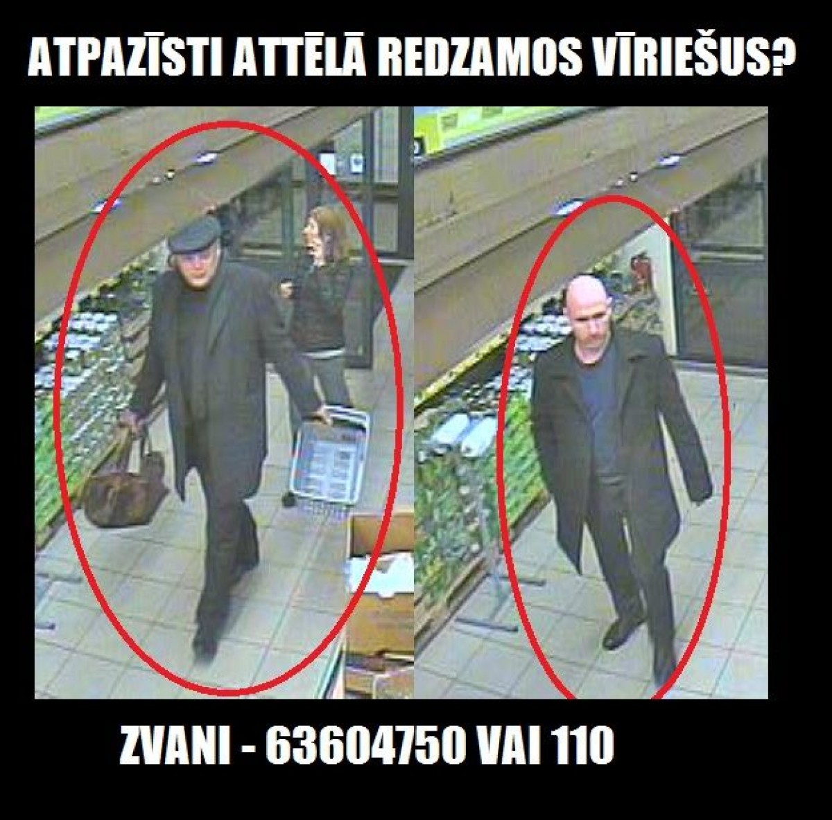 Policija aicina uzmanīgi aplūkot attēlos redzamos vīriešus un atpazīšanas gadījumā zvanīt pa tālruņa numuru 63604750; 110 vai vērsties personīgi Valsts policijas Ventspils iecirknī Ostas ielā 33.