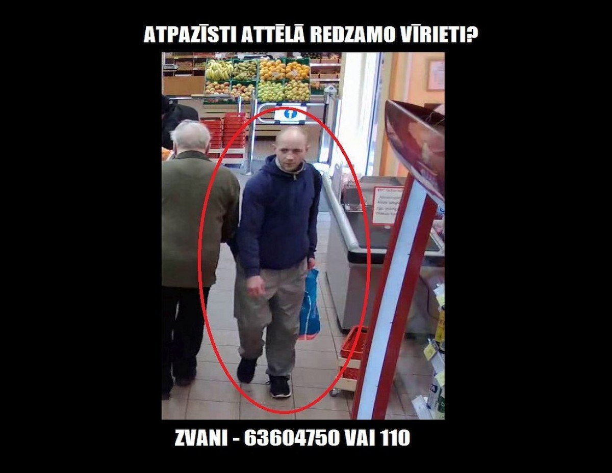 Valsts policijas Ventspils iecirknis meklē attēlā redzamo vīrieti. Persona tiek turēta aizdomās par vairāku zādzību izdarīšanu no vairākiem tirdzniecības objektiem Ventspilī.