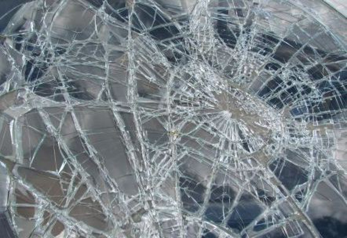 Uz Ventspils-Rīgas šosejas bez priekšēja stikla palikusi automašīna Audi A4, kuru cauršāva ledus gabals.