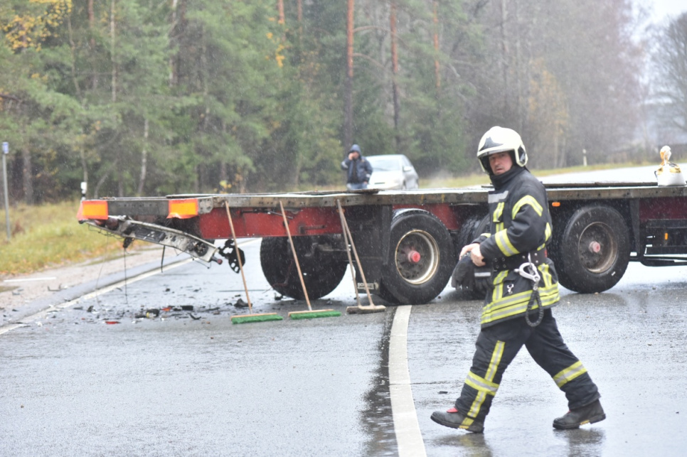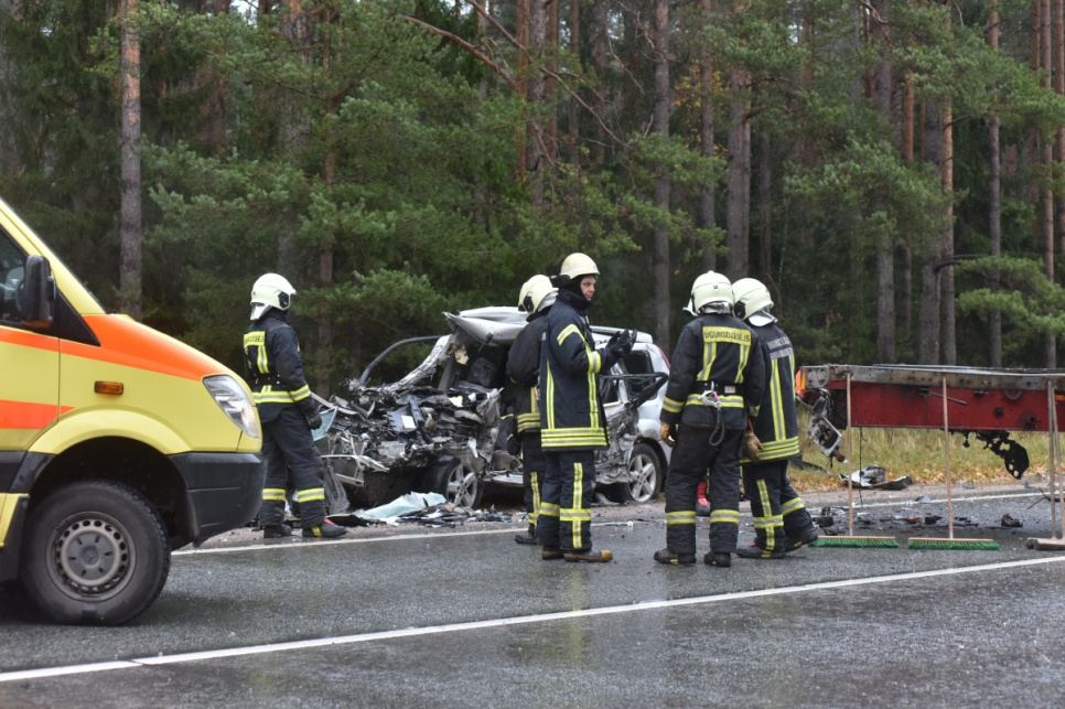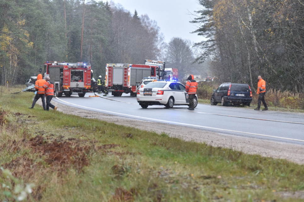 Šobrīd notikuma vietā strādā Valsts policija, Valsts ugunsdzēsības un glābšanas dienests un Neatliekamās medicīniskās palīdzības dienests. Šobrīd rīcībā esošā informācija liecina par to, ka negadījumā ir gājis bojā cilvēks. Satiksme abās joslās bija bloķēta vairākas stundas.