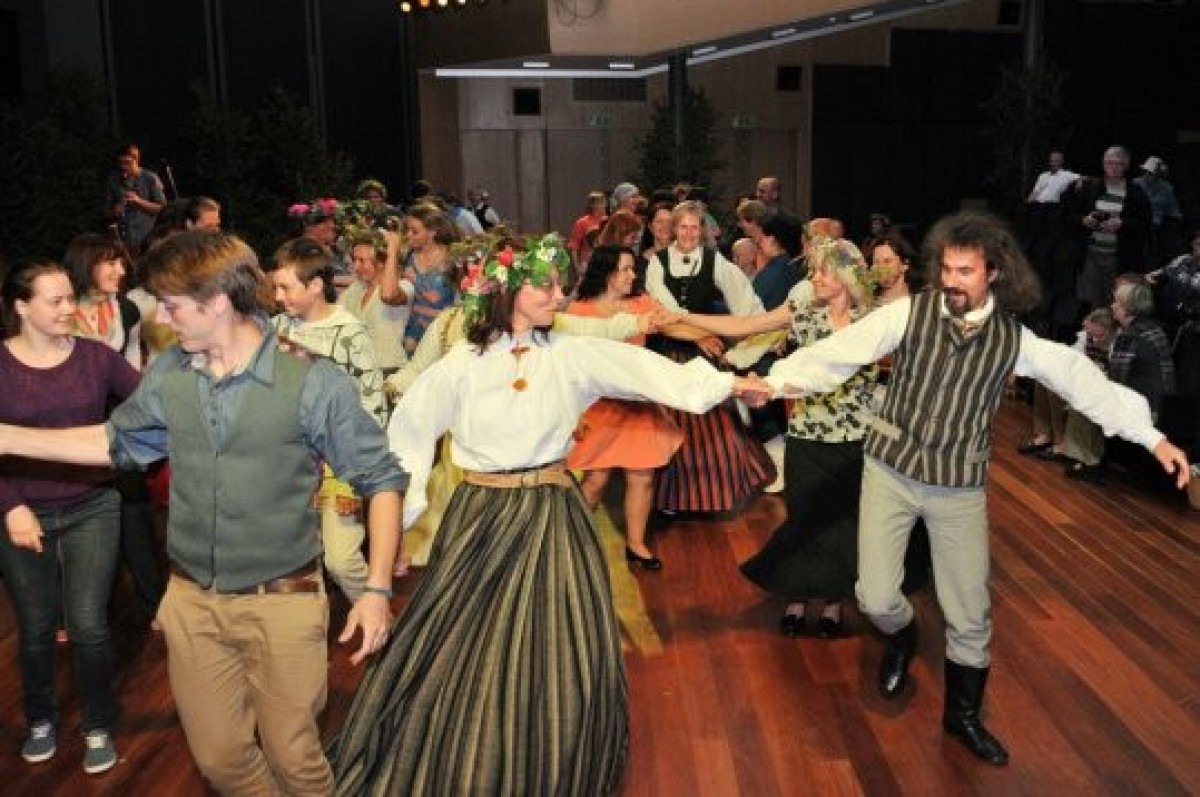 Savukārt stundu vēlāk jauniešu folkloras kopa "Dārdi" visiem klātesošajiem atskaņoja savu jaunāko tautas dziesmu programmu "Saules dziesmas", bet pēc koncerta visi klātesošie tika aicināti iegriezt saules ceļu jautros latvju dančos.
