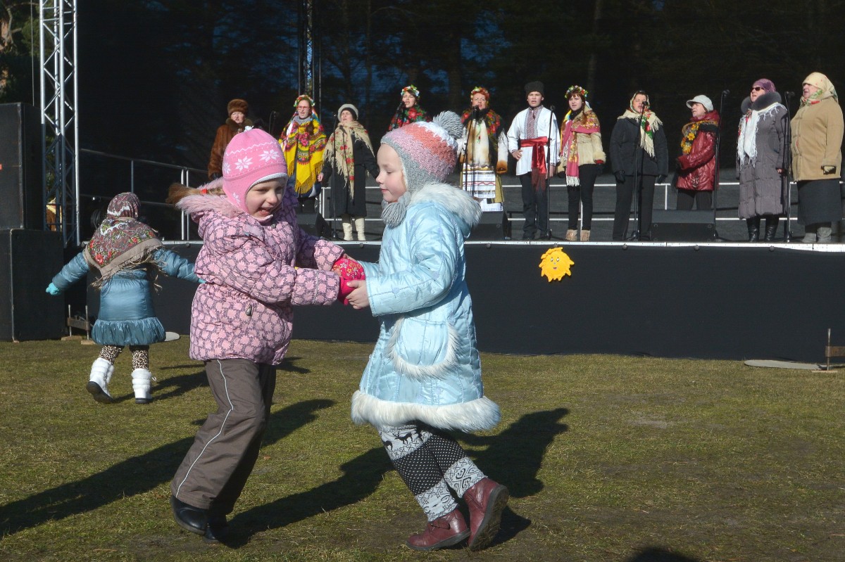 Salmu biedēkli kopā ar ziemu sadedzināt paredzēts plkst. 15. Līksmība nerimsies visā muzeja teritorijā: rosīsies ķekatnieki, notiks sporta spēles, vizināšanās ar zirdziņiem, darbosies nacionālās krievu, ukraiņu un baltkrievu sētas un pagalmi, tirgosies tirgotāji... Mazākie bērni varēs vērot animācijas filmas pie dzirnavām, bet lielākie – iepazīt peintbolam līdzīgo lāzertaga spēli. Svētkos piedalīsies pašmāju pašdarbības kolektīvi, bet būs arī viesi – baltkrievu dziesmu ansamblis Kupaļinka no Lietuvas.