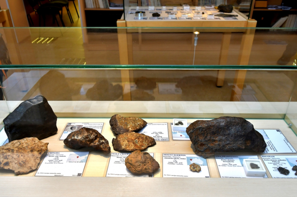 Izstādē iespējams apskatīt 76 unikālus meteorītus no 3 dažādām kolekcijām – Latvijas Universitātes Zinātnes un tehnikas muzeja, biedrības Meteorīti.LV, Teo.LV un Latvijas Meteorītu centra kolekcijām.