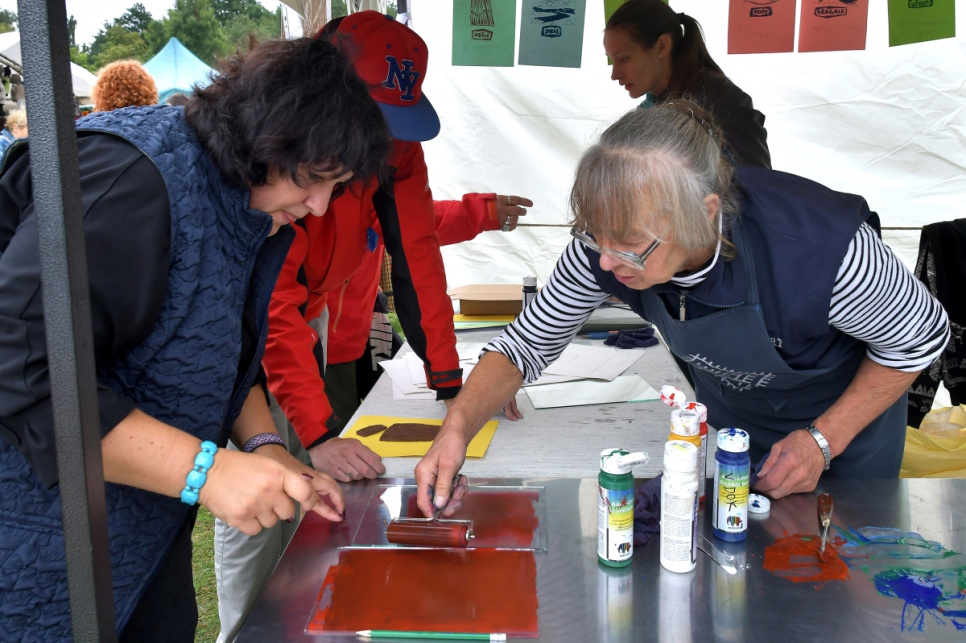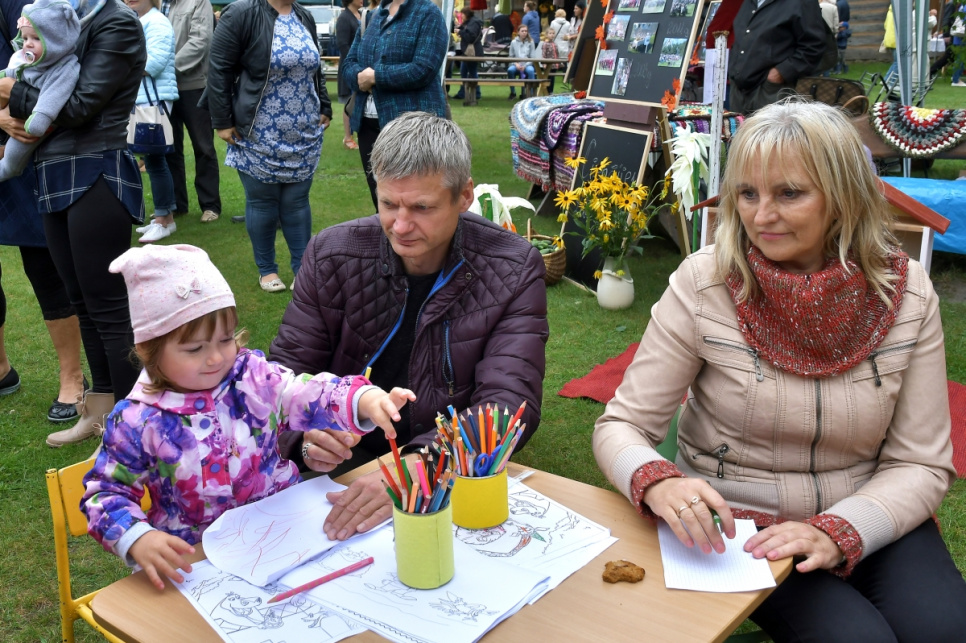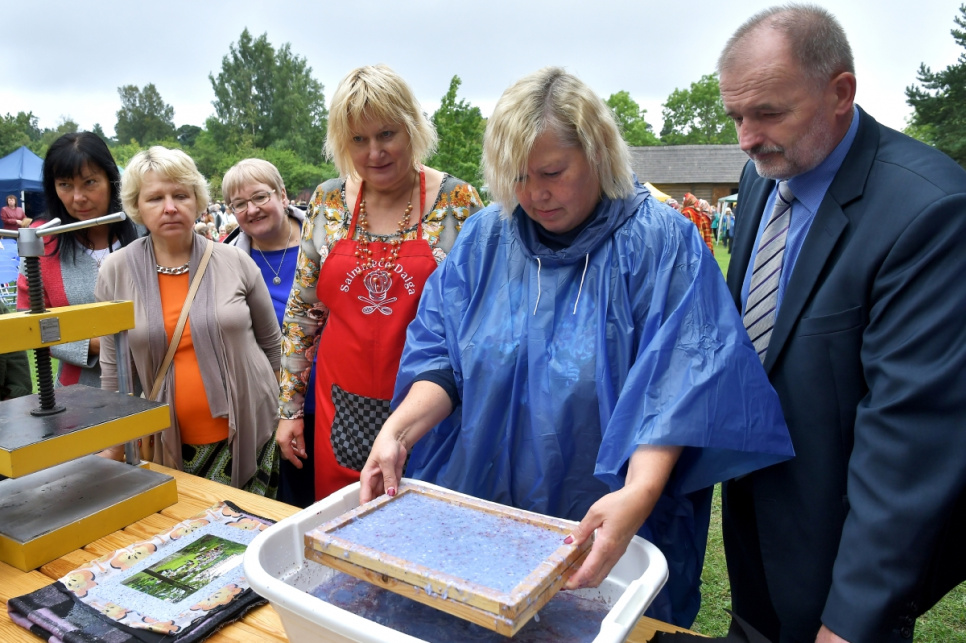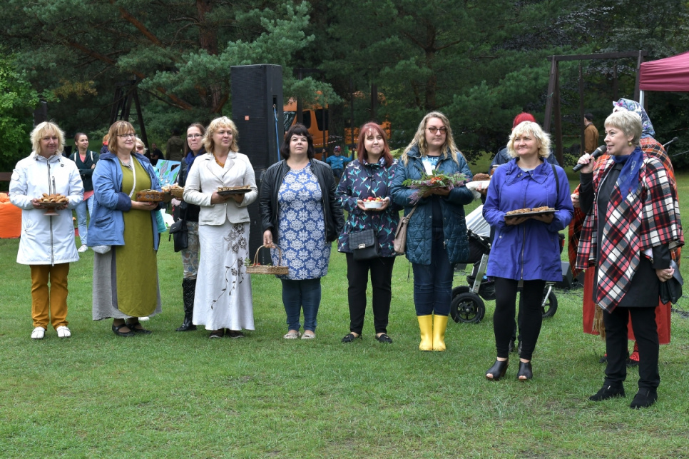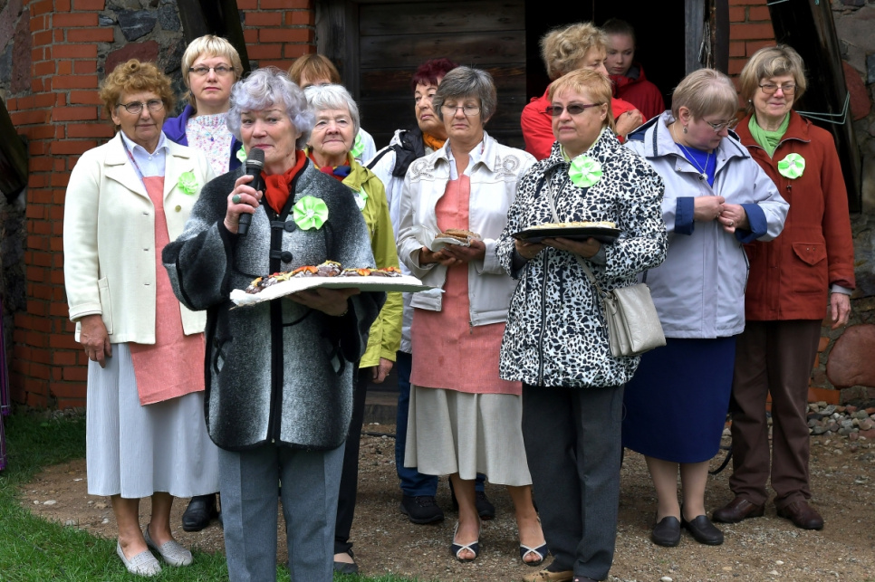 Viesos tika aicinātas Kuldīgas muzeja rokdarbu kopas "Čaupe" pārstāves, kuras rādīja zeķu izstādi, ar rokdarbiem dižojās arī Ventspils novada rokdarbnieces.
