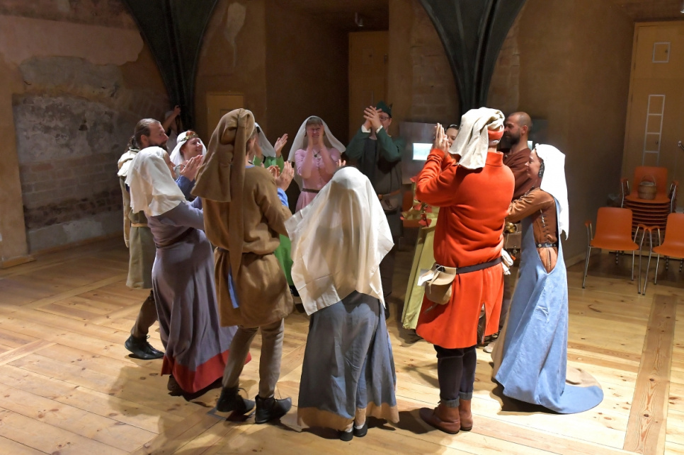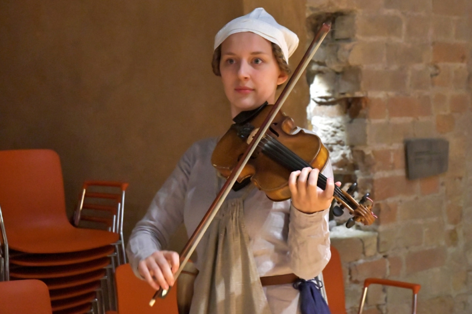 Pils kapelā uz viduslaiku klavesīna tika atskaņotas melodijas no 15. gadsimta manuskripta "Codex Faenza", bet pils iekšpagalmā dziedāja un spēlēja vēlīno viduslaiku dziesmas.
