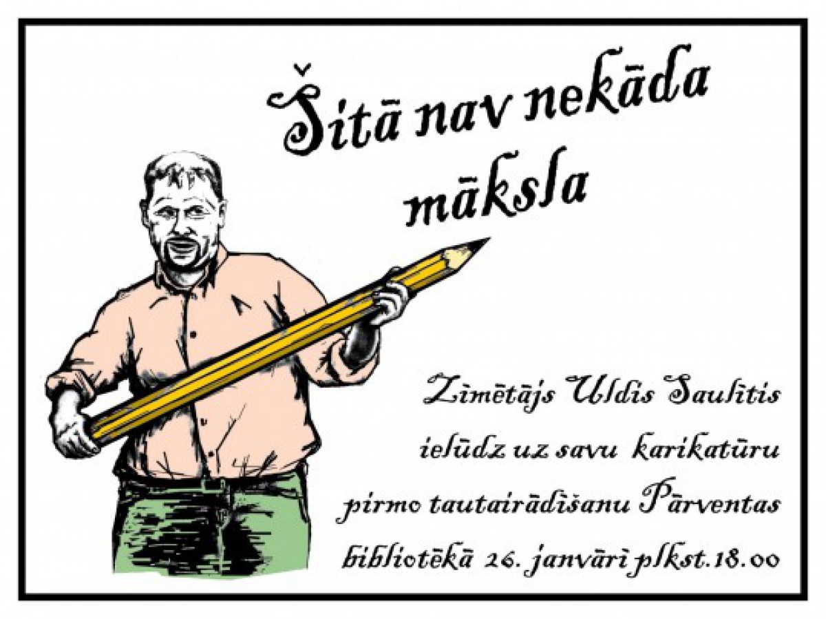 Šodien plkst. 18.00, Pārventas bibliotēkā notiks Ulda Saulīša karikatūru izstādes „Šitā nav nekāda māksla” atklāšana.