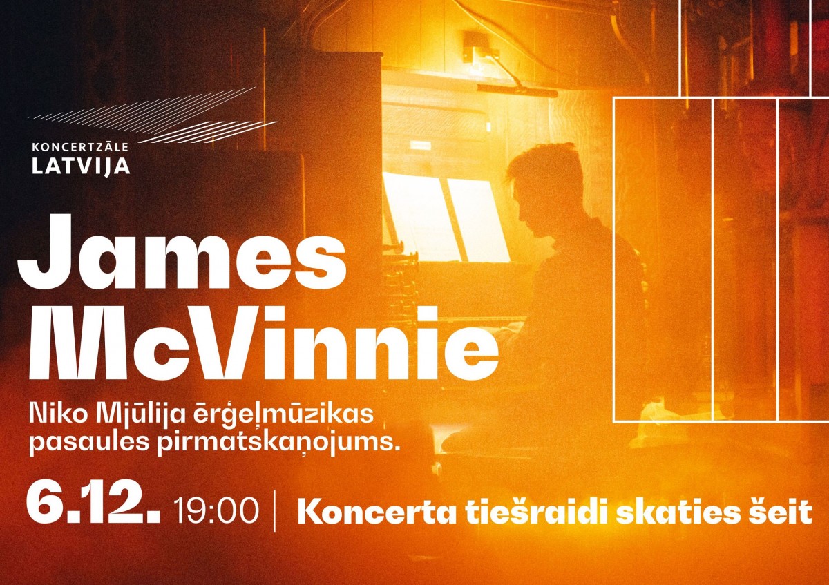6. decembrī plkst. 19 tiešraidē no koncertzāles ''Latvija'' tiks translēts izcilā britu ērģelnieka Džeimsa Makvinija koncerts, kurā pasaules pirmatskaņojumu piedzīvos amerikāņu komponista Niko Mjūlija īpaši šim koncertam radītie skaņdarbi, kā arī Sufjana Stīvensa, Johana Sebastiana Baha, Marsela Duprē un Ferenca Lista opusi ērģelēm.