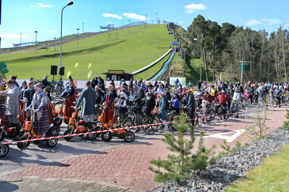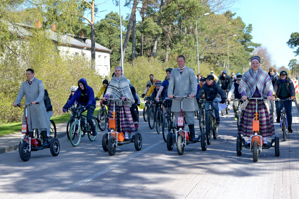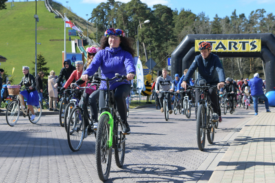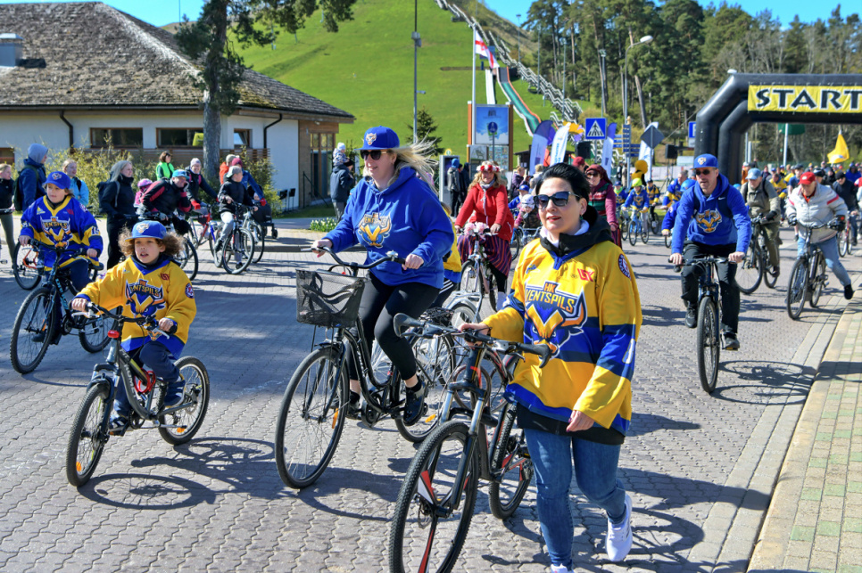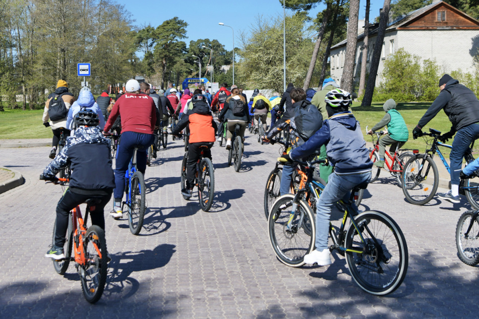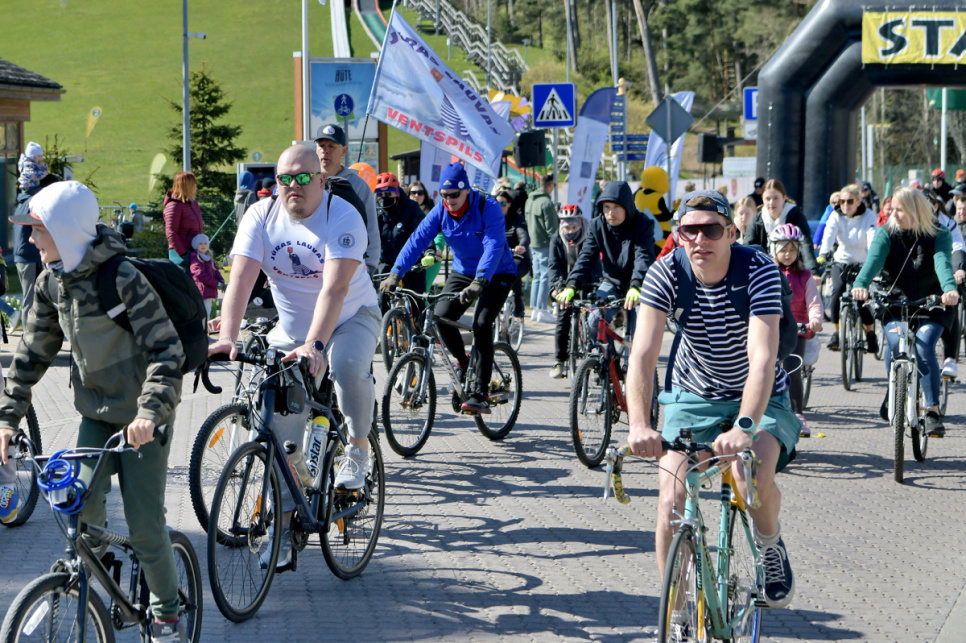 Pēc tam uz Lielās trases starta pulcējās velobraucēji, piepildot Saules ielu no Piedzīvojumu parka galvenajiem vārtiem līdz pat Ventspils robežai.