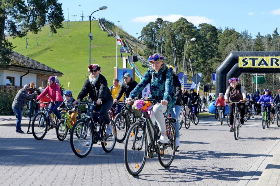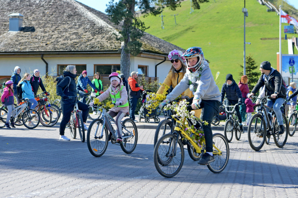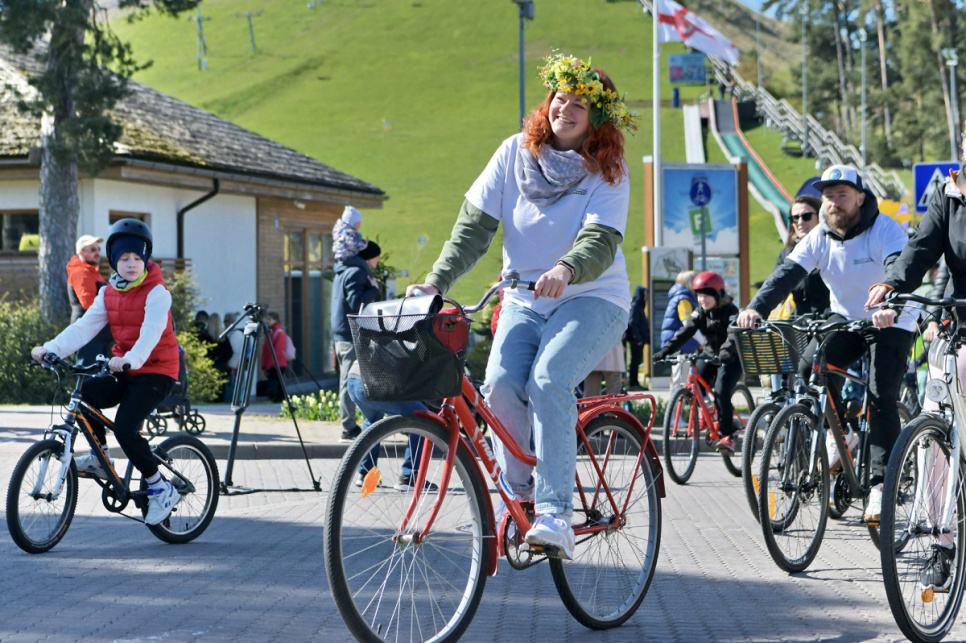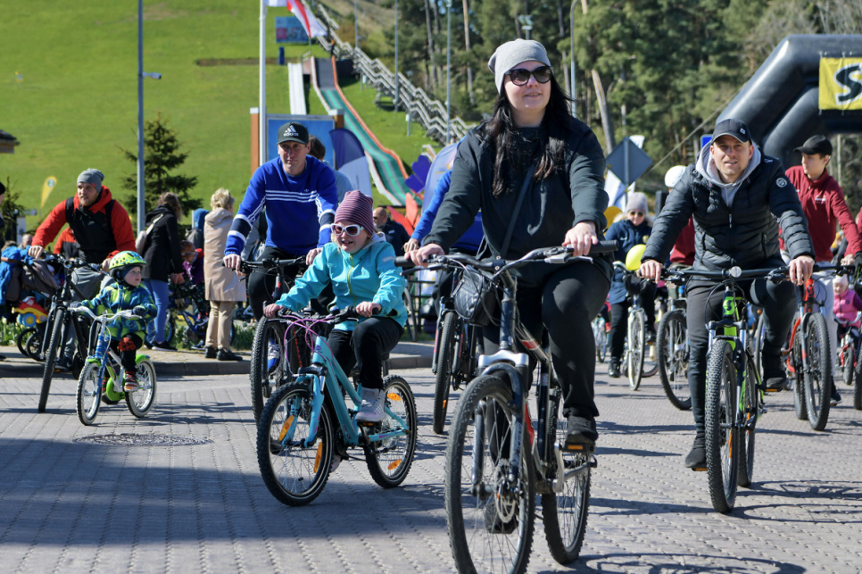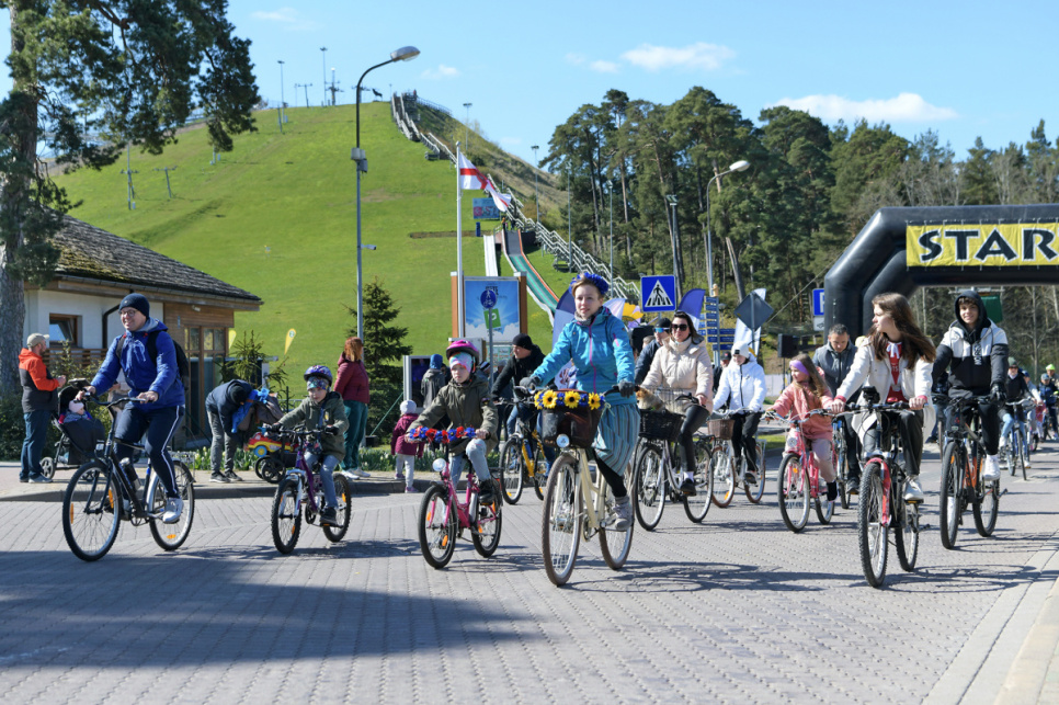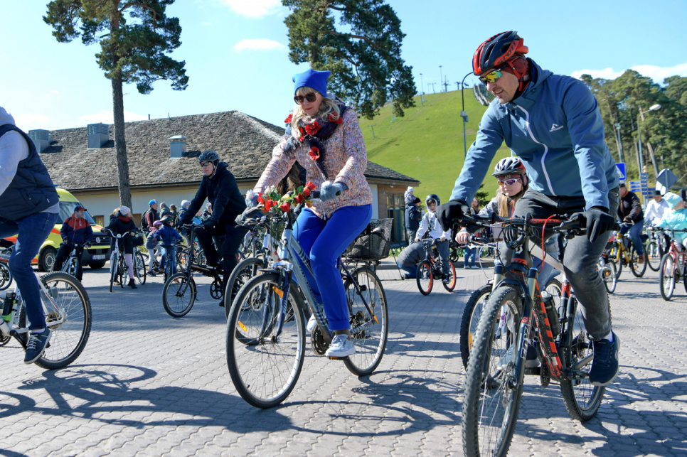 Pēc tam uz Lielās trases starta pulcējās velobraucēji, piepildot Saules ielu no Piedzīvojumu parka galvenajiem vārtiem līdz pat Ventspils robežai.