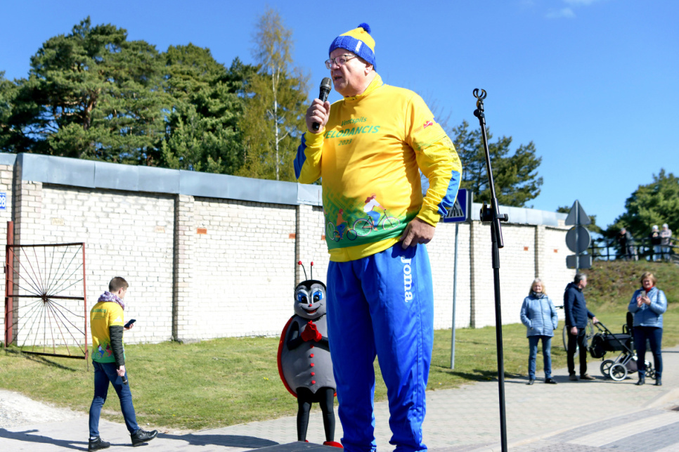 Pēc velobrauciena Piedzīvojumu parkā uz skatuves Ventspils valstspilsētas pašvaldības domes priekšsēdētāja 1. vietnieks sadarbības jautājumos Guntis Blumbergs sveica velobrauciena nomināciju uzvarētājus.