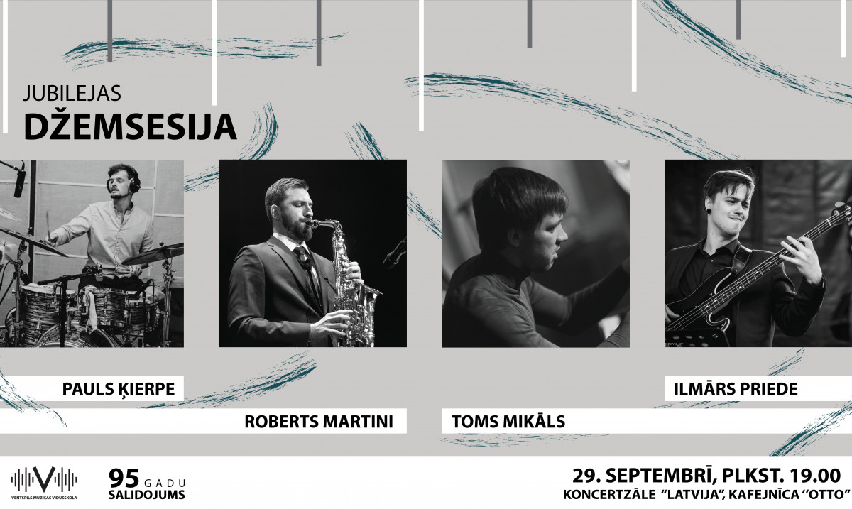 Skolas 95 gadu jubilejai veltītā džemsesija plānota pulcējot skolas izcilākos absolventus – džeza mūzikas profesionāļus: Roberts Martini (saksofons), Toms Mikāls (klavieres), Pauls Ķierpe (sitaminstrumenti), Ilmārs Priede (basģitāra).