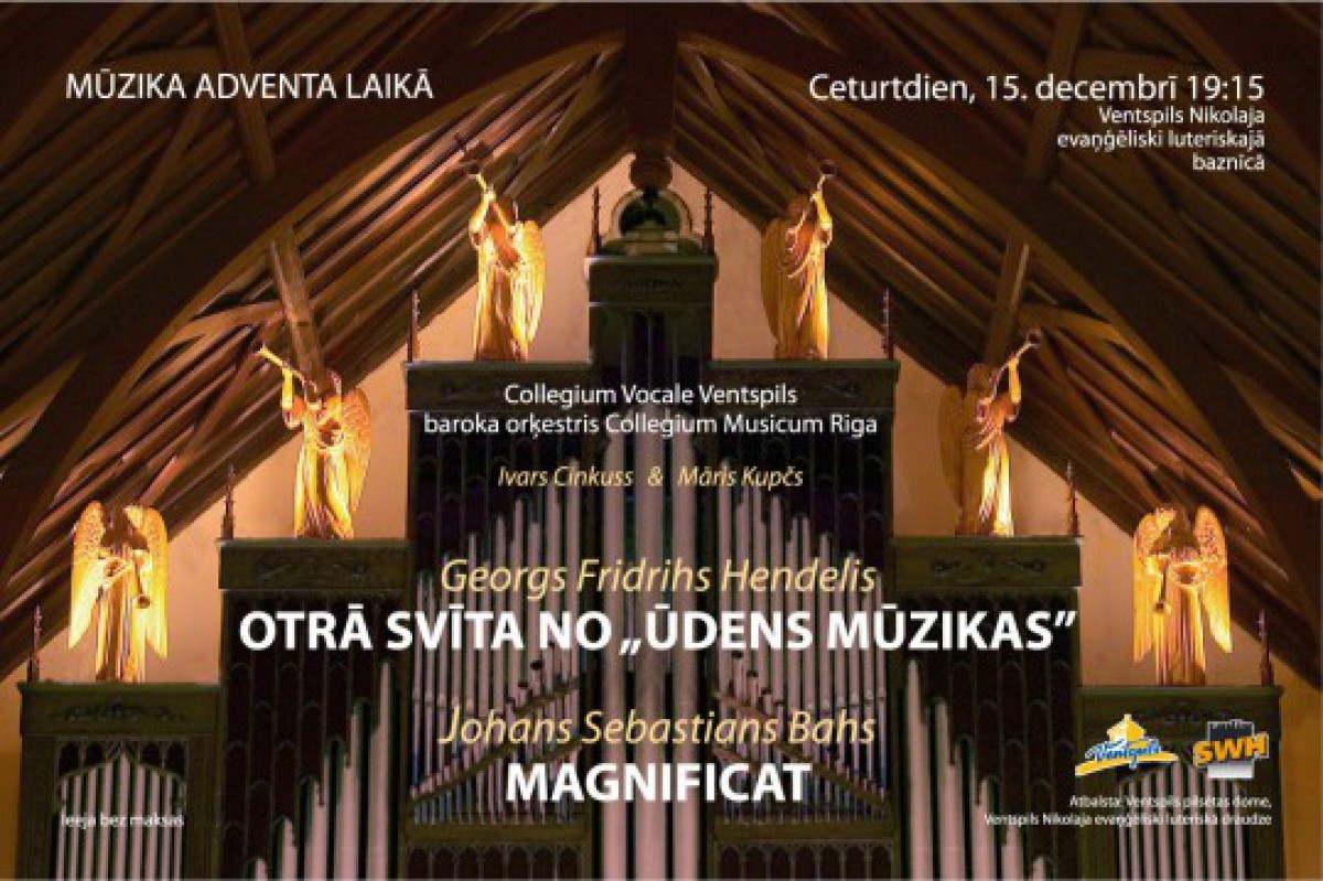 Koncertā Ventspils Nikolaja evaņģēliski luteriskajā baznīcā skanēs baroka dižgaru Johana Sebastiana Baha un Georga Fridriha Hendeļa mūzika. Klausītājiem šajā Adventa laikā būs iespēja dzirdēt vienu no Baha daiļrades unikālajiem skaņdarbiem - majestātisko Magnifikātu re mažorā, ar kura atskaņojumiem Latvijas koncertzālēs publika netiek lutināta, kā arī Hendeļa šarmanti vizuļojošo 2. svītu no „Ūdens mūzikas”.