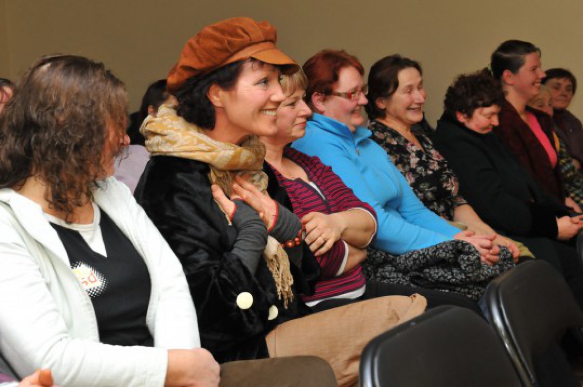 Viena no aktīvākajām sapulces dalībniecēm Velta (priekšplānā) ieteica pievērst uzmanību veselības aprūpei.