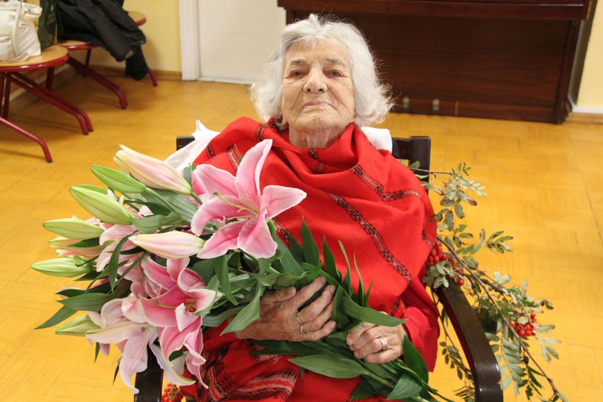 Ventspils novada domes priekšsēdētājs Aivars Mucenieks īsā uzrunā teica, ka astoņu gadu laikā, kopš viņš ir domes priekšsēdētājs, šī ir piektā reize, kad viņš sveic simtgadnieci: "Tas ir liels gods, jo īpaši tagad, kad runājam par Latvijas simtgadi, tādēļ katra atmiņa, ko atceras simtgadnieki, veido mūsu valsts vēsturi."