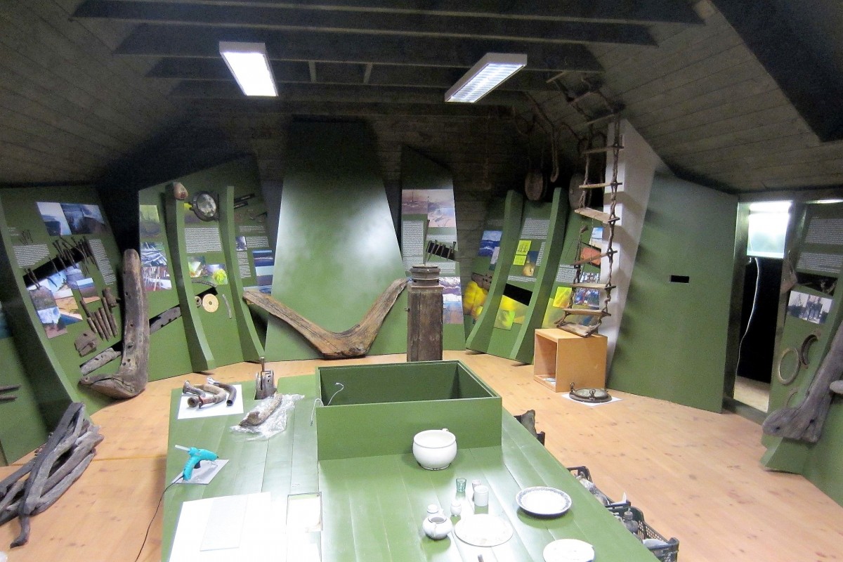 Jūrkalnes pagasta tautas nama otrajā stāvā izveidotais muzejs, kas vēsta arī par Baltijas jūras stihijas upuriem, papildināts ar pludmalē atrastajām un no dzelmes izceltajām senlietām. Ēkas otrais stāvs izveidots kā improvizēts nogrimis burinieks, tādēļ apmeklētāji varēs apskatīt un izjust zemūdens kultūrvēsturisko mantojumu, akcentējot kuģu vrakus, kas atrodas Jūrkalnes krastos. Ekspozīcijā ietilpst nirēju ekipējums un atribūtika, foto un video materiāli no jūras dzelmes, zemūdens atradumi. Skaņas un apgaismojums noārda tiltu starp vēsturi un mākslu. Izstādes telpā ir radīta vide kā jūras dzelmē, ļaujot "ienirt" un ielūkoties "nogrimuša vraka" tilpnē.