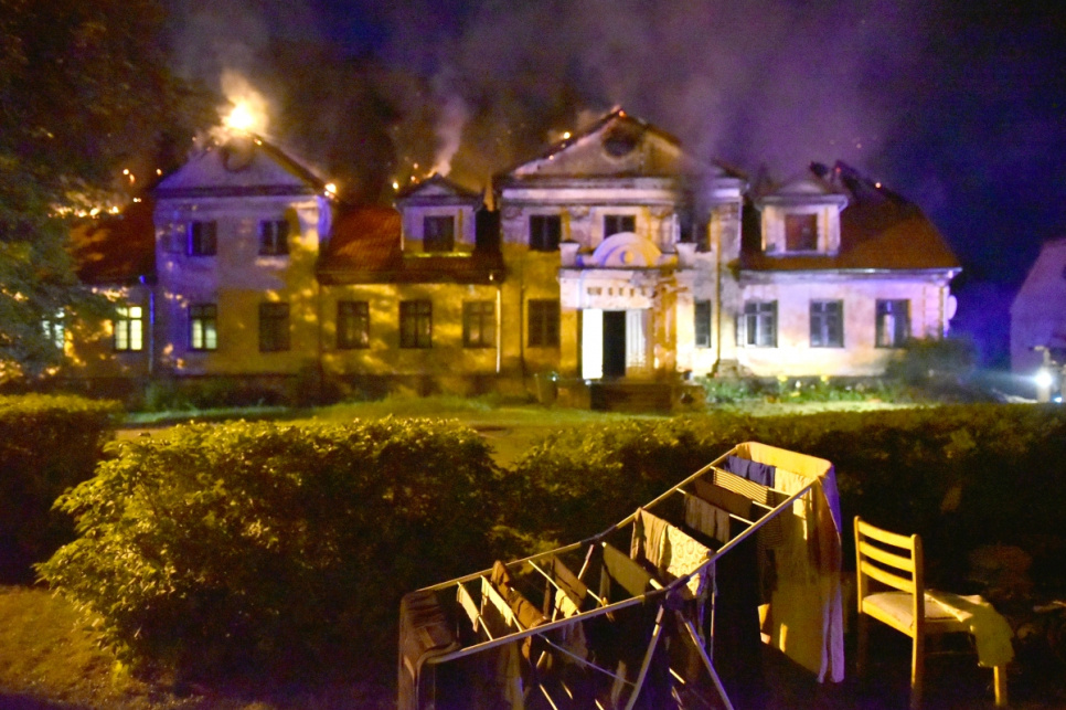 Stāsta Austrasbērnu radošās nedēļas muzikālā vadītāja Kristīne Locika: «Pēc pusnakts sēdēju muižas zālē un laboju notis, kad izdzirdēju laukā balsis - ugunsgrēks, ugunsgrēks. Izgāju laukā un ieraudzīju, ka nams jau deg pilnās liesmās, izsaucu ugunsdzēsējus. Vīrieši uzsāka cilvēku evakuāciju.»