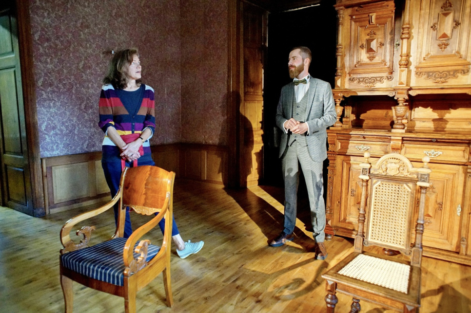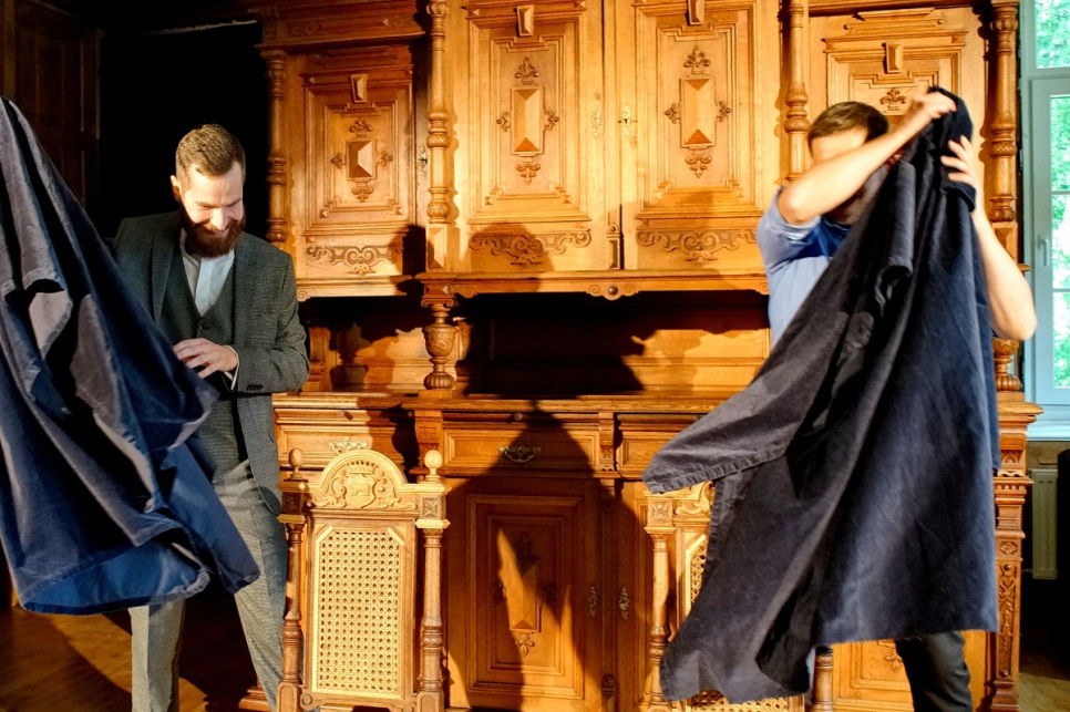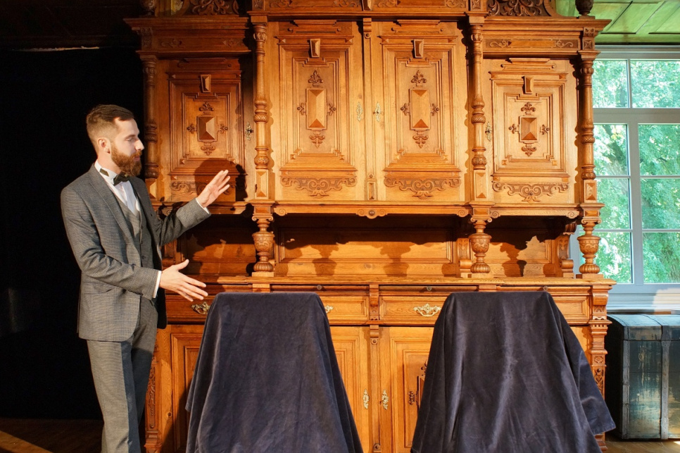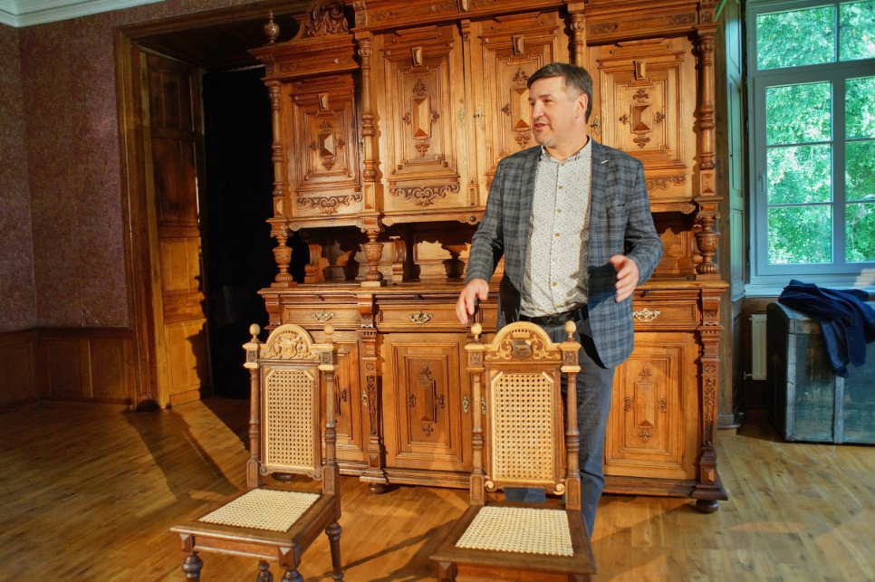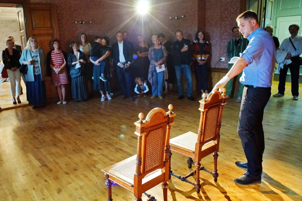 Svinīgajā restaurēto krēslu atklāšanas pasākumā vairākkārt tika minēta vēl kāda nianse, kas būtiski atšķir iepriekš restaurētās ēdamzāles bufetes skapja restaurācijas procesu no krēsliem veiktā. Ja visas bufetes detaļas, gan senās, gan no jauna veidotās, galarezultātā ieguvušas vienu tonējumu un nezinātājs tās vienu no otras nošķirt nevar, tad krēsliem gan ar nolūku oriģinālie elementi ir ar tumšāku tonējumu nekā jaunie. Tādējādi var uzskatāmi redzēt un analizēt restauratora veikumu. Šī nianse smagajiem ozolkoka krēsliem piešķir tādu kā rotaļīgumu, bet vienlaikus dod iespēju katram, kurš krēslus uzlūko klātienē, saprast, cik filigrāni smalks un dažkārt uz neiespējamības robežas balansējošs ir meistara darbs.