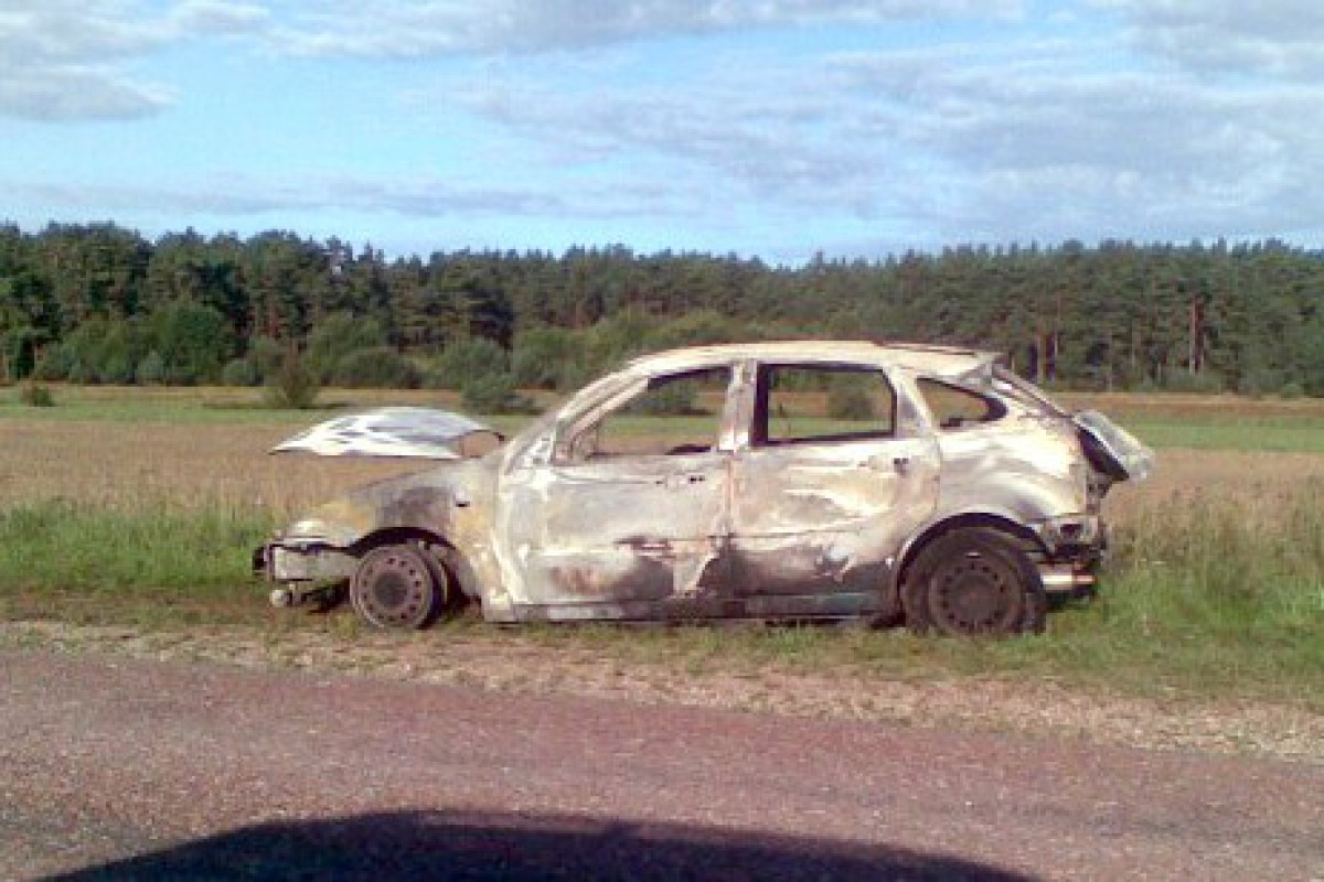 Šorīt uz Užavas ceļa, netālu no alusdarītavas, atradās sadegusi automašīna.