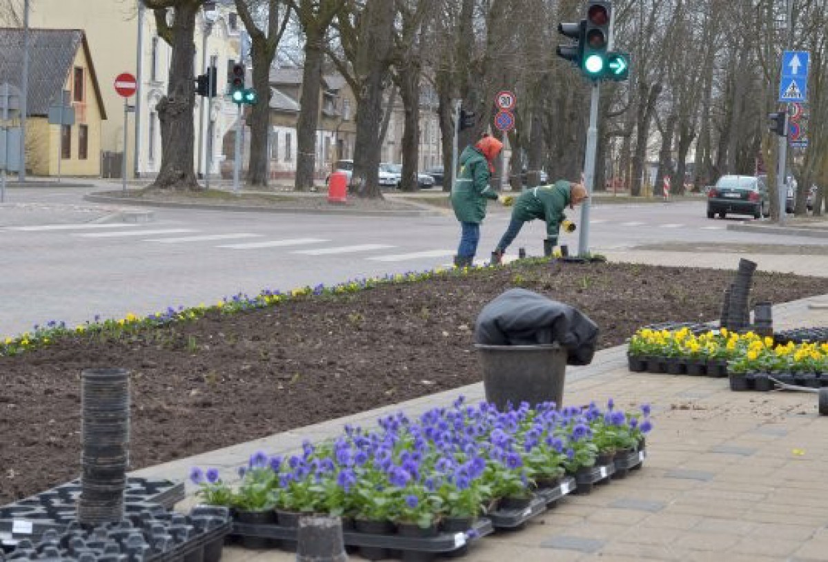 Šodien puķu dobē iepretim Kultūras centram iedēstītas pirmās pavasara vēstneses – atraitnītes.