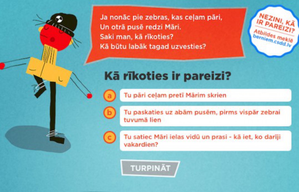 Bērni aicināti apgūt ceļu satiksmes noteikumus jaunajā CSDD satiksmes drošības portālā berniem.csdd.lv un zināšanu praktisko pielietojumu pārbaudīt ar aplikācijā ietvertajiem uzdevumiem.