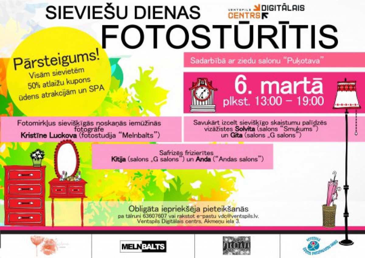 Piektdien, 6. martā, Ventspils Digitālais centrs par godu Sieviešu dienai sarūpējis īpašus svētkus daiļā dzimuma pārstāvēm! Fotostūrītis darbosies no plkst. 13:00 līdz pat 19:00.