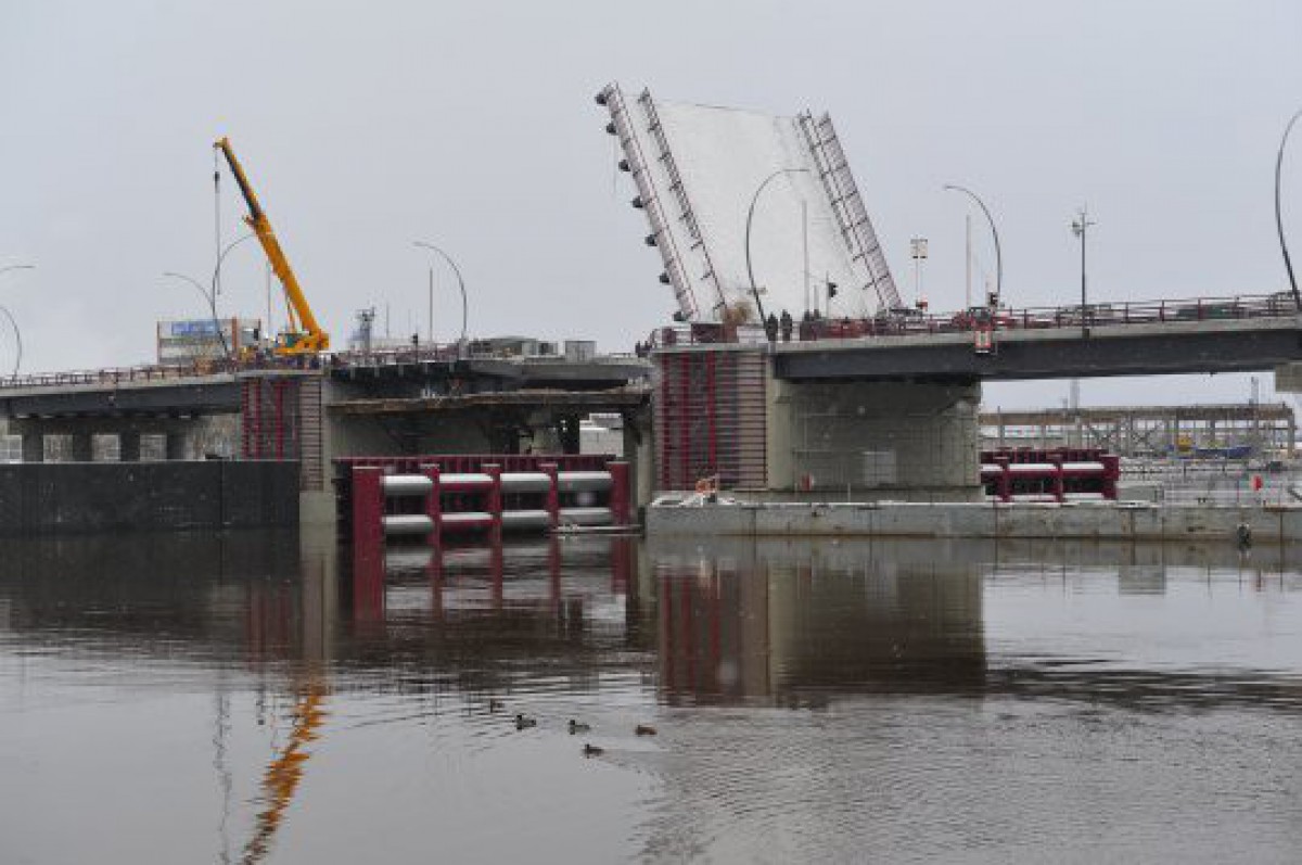Turpinās Ventas tilta rekonstrukcija, šodien notika atkārtota tilta paceļamās daļas mehānisma pārbaude.