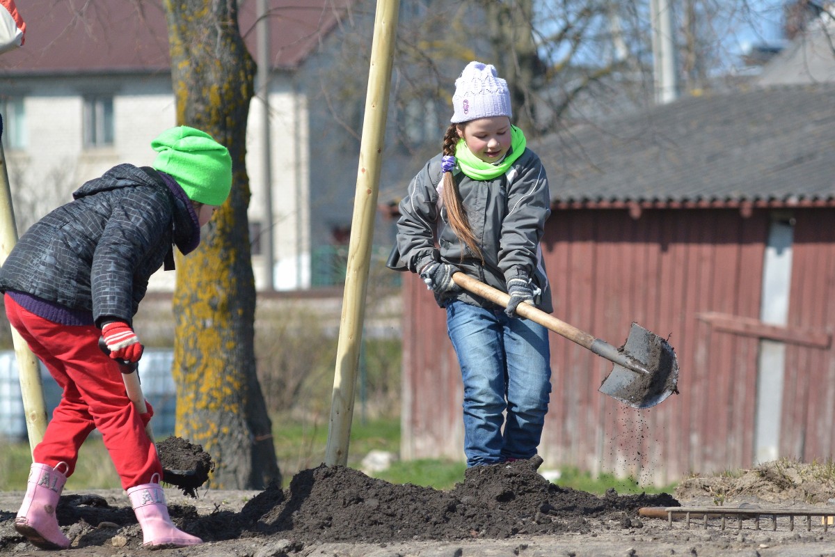 Viens no domniekiem tāds liels un dūšīgs-tas viens pats varēja izrakt bedrītes priekš visiem kociņiem.Un tie sīkākie lai ar tačkām ved prom lieko zemi!