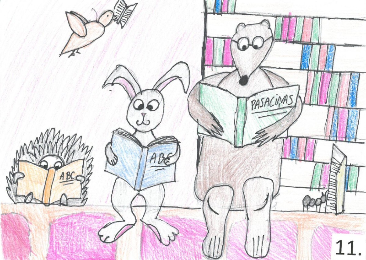 Ventspils Mākslas skolas 2.a kursa audzēknes Esteres Lāces darbs rotās Bērnu bibliotēkas lasītāju kartes. Bērnu bibliotēka sadarbībā ar Ventspils Mākslas skolu rīkoja zīmējumu konkursu “ES UN BIBLIOTĒKA”, kurā tika noteikts nākamais bērnu bibliotēkas lasītāju karšu dizains.