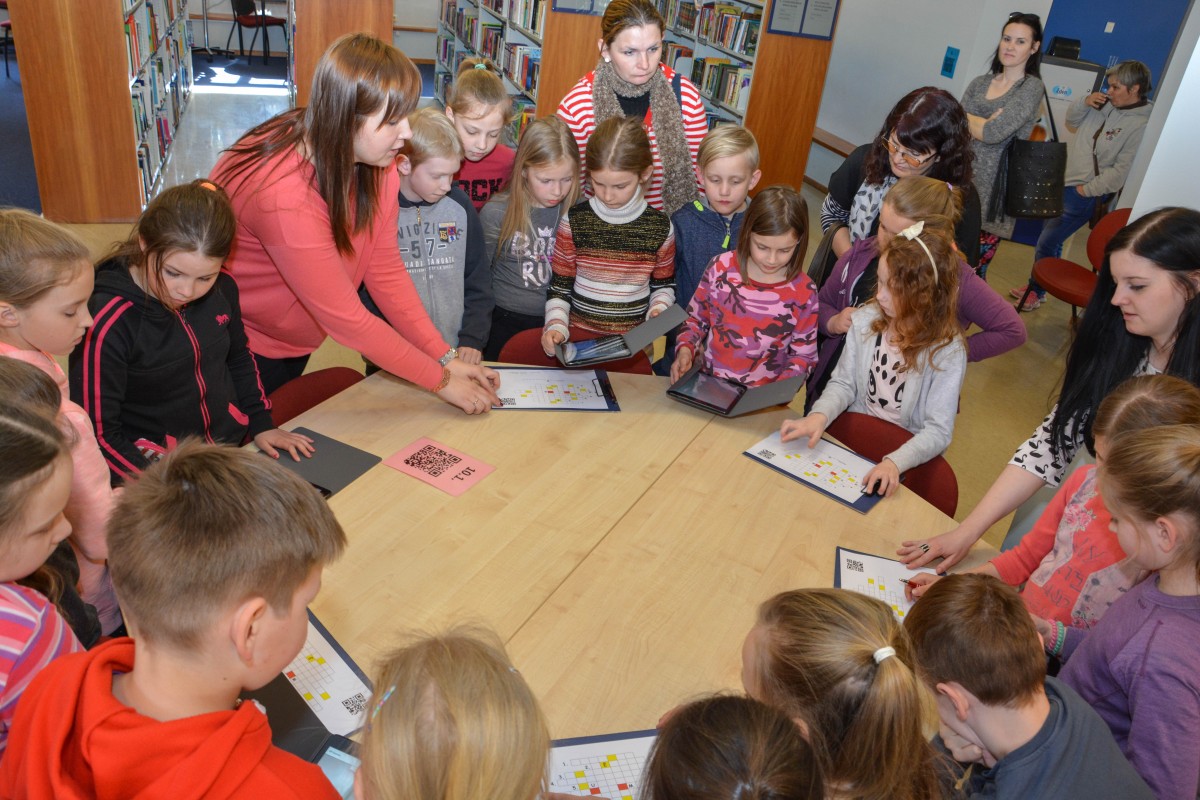 Ventspils Galvenajā bibliotēkā viesojās Skrundas vidusskolas audzēkņi, kopumā 20 skolēni, ar lielu interesi un prieku iesaistoties 9 uzdevumu izpildē, tādā veidā iepazīstot bibliotēku. Skolēni meklēja bibliotēkas 1. un 2. stāvā īpašus QR kodus, kurus nolasot ar planšetu palīdzību, uzzināja veicamos uzdevumus, piemēram, bibliotēkas mājaslapā biblioteka.ventspils.lv meklēja marta lasītāko grāmatu, izspēlēja vārdu spēles, atbildēja uz jautājumiem par drošību internetā, fotografējās pie Reģionālā mācību centra un veica citu uzdevumus. Kā atzina skolēni, viņiem visvairāk paticis tieši tas, ka katra uzdevuma izpildē bija jāizmanto planšete, kas uzdevumus padarīja daudz interesantākus.