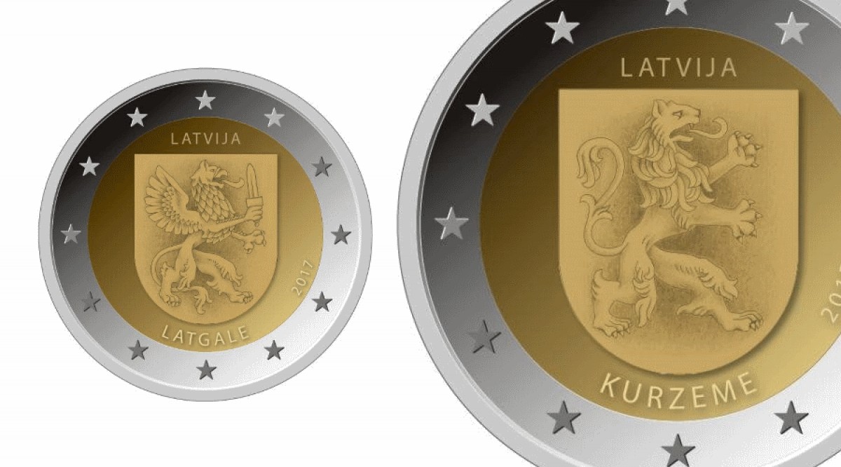 "Šīs monētas, uz kurām attēloti Kurzemes un Latgales ģerboņi, turpina Latvijas kultūrvēsturiskajiem apgabaliem veltīto divu eiro piemiņas monētu sēriju, kas ir viens no Latvijas Bankas veltījumiem valsts 100 gadu jubilejā. Pirms gada tika izlaista divu eiro piemiņas monēta ar Vidzemes ģerboni, bet valsts jubilejas gadā monētu sēriju noslēgs Zemgalei veltīta monēta," pauda Latvijas Bankas pārstāvji.