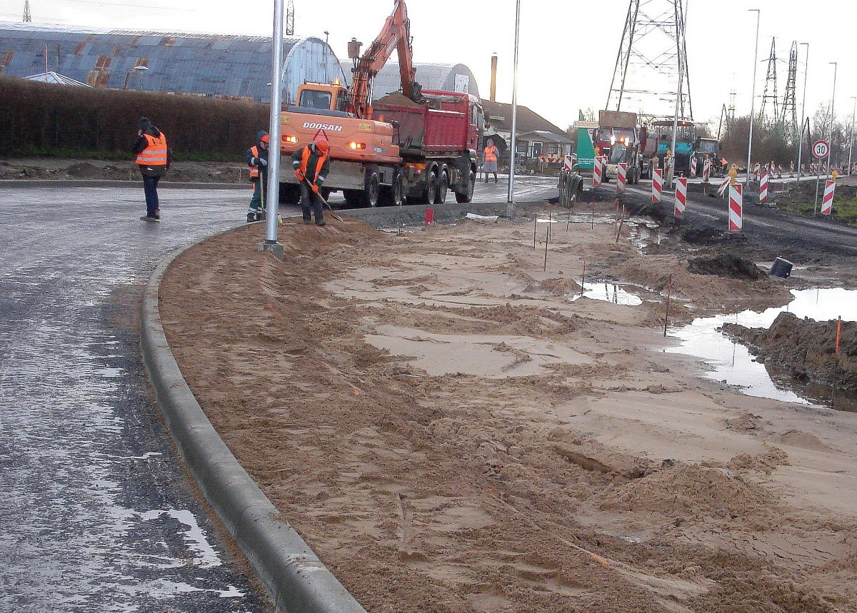 Nu izskatijas ka nekur nesteidzas,darbdienas stradaja tris-pieci cilveki to posmu vareja uzstaisit menešu laika.