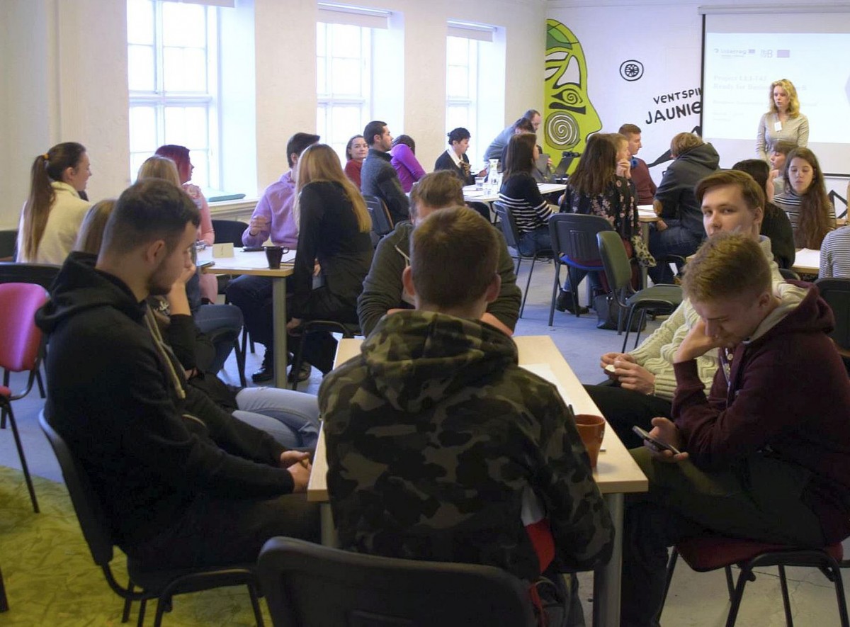 Ventspils jauniešu mājā pulcējās 36 jaunieši no Latvijas un Lietuvas, lai izmēģinātu savas spējas un zināšanas simulācijas spēlē Gatavs biznesam.