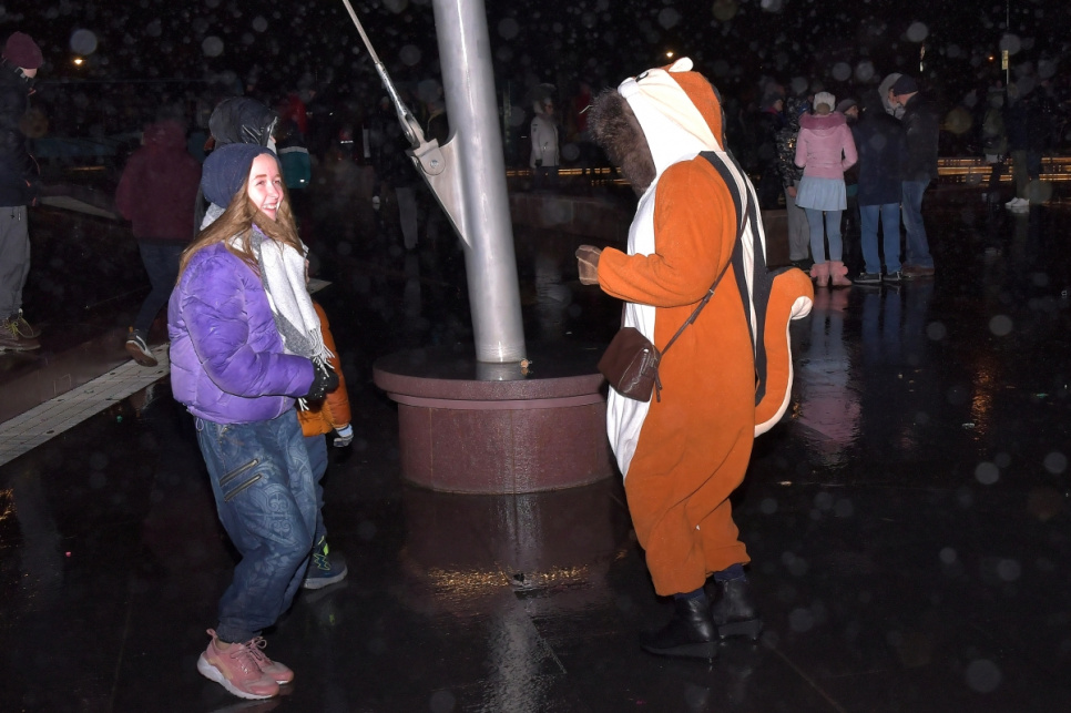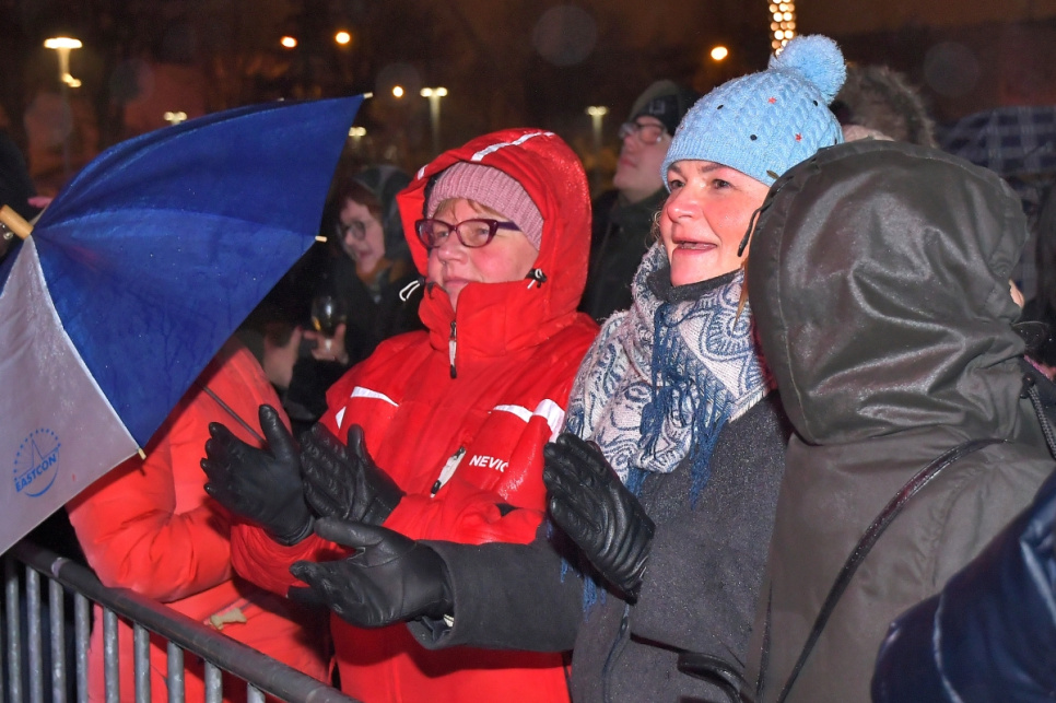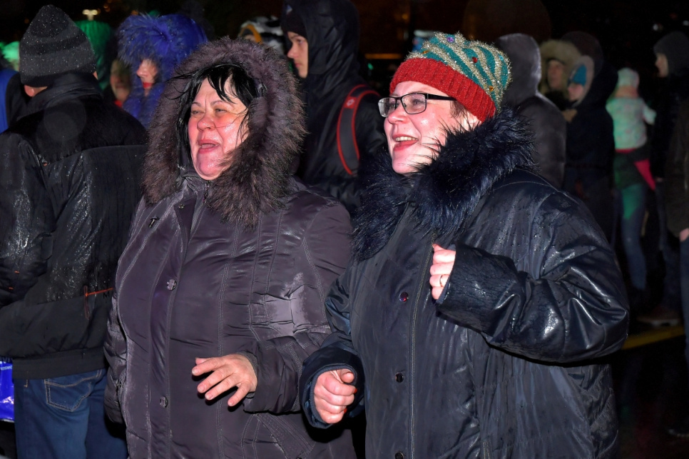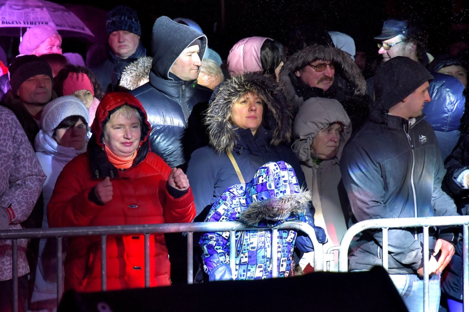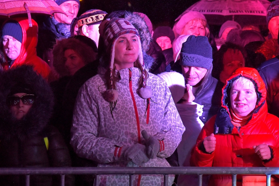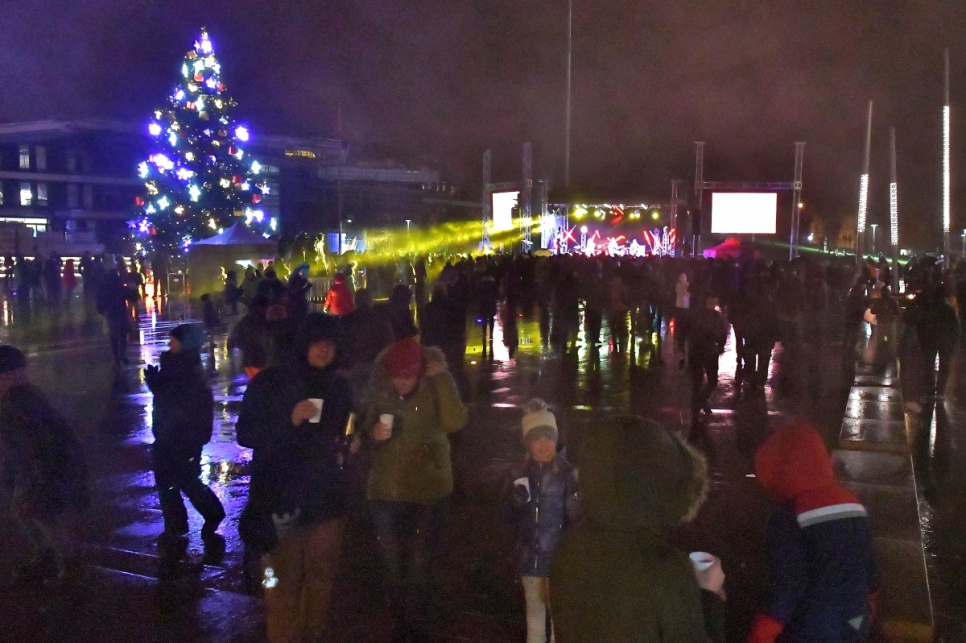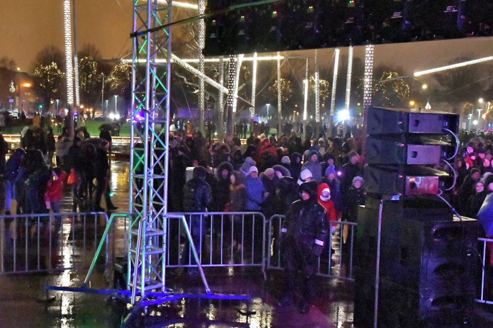 Ventspilī Jaunā gada svinības atnāca ar lietu un vēju ar brāzmām līdz 15 metriem sekundē, kas nozīmēja, ka svētku uguņošana nebija iespējama, bet gadumija Lielajā laukumā tik un tā sagaidīta labā noskaņojumā.