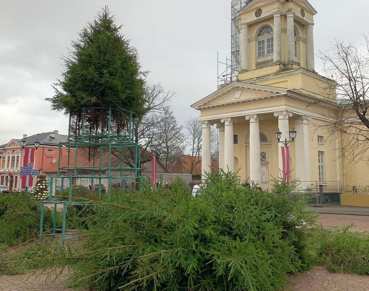 Rātslaukumā sāk veidot Ziemassvētku egli