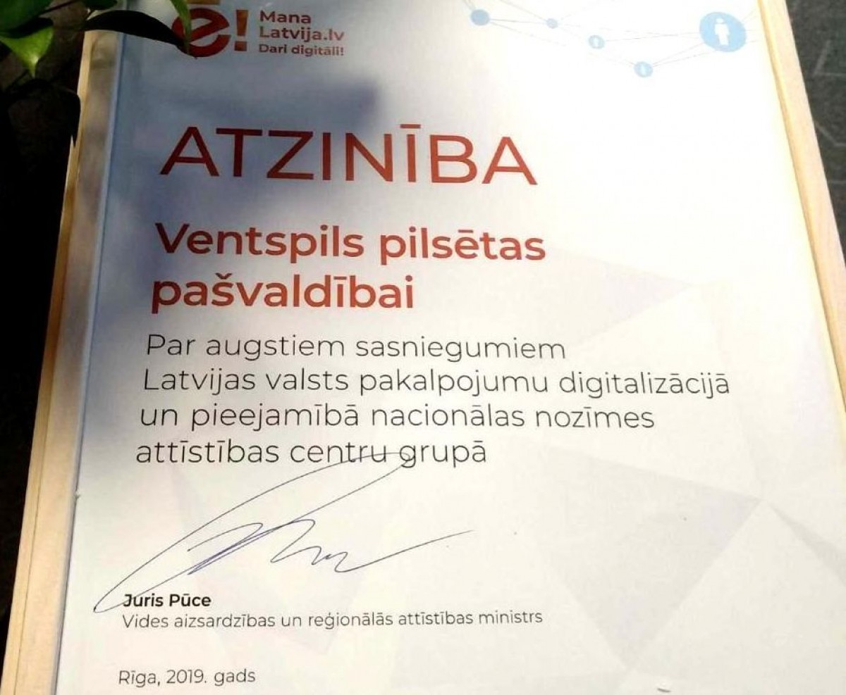 2017. gadā Ventspils pilsēta saņēma pirmo vietu Lattelecom un Vides aizsardzības un reģionālās attīstības ministrijas (VARAM) iniciētajā Latvijas digitālās vides mērījumā ''Latvijas e-indekss'', par augstāko rezultātu Digitāli attīstītāko pašvaldību nominācijā reģionālo pilsētu kategorijā.