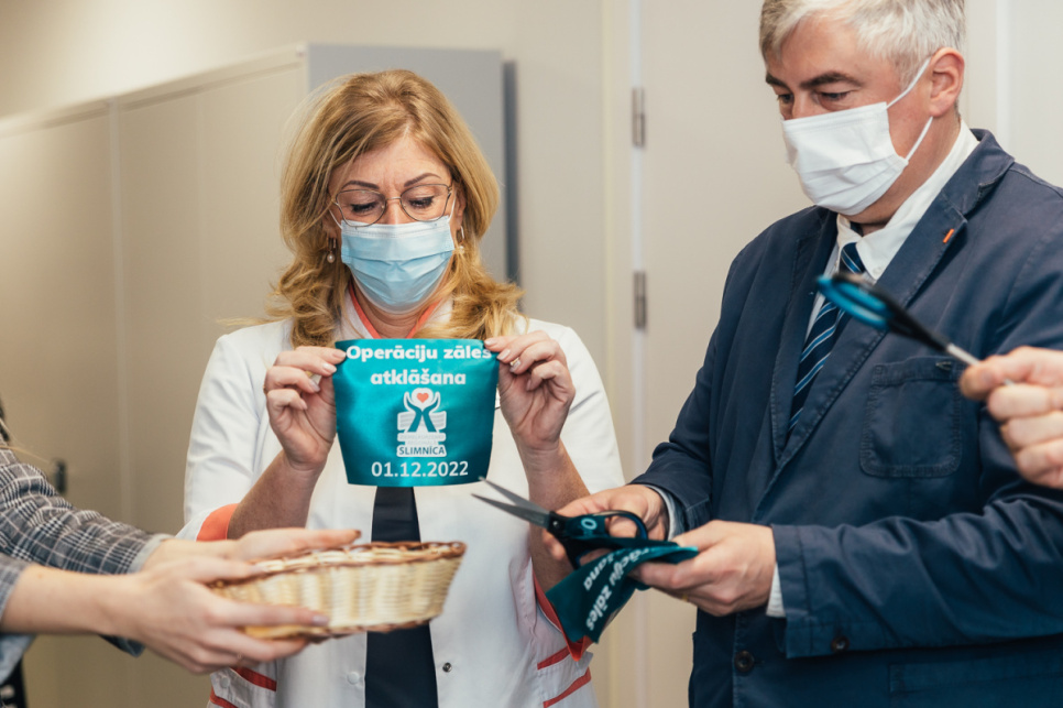 Būtiski, ka jaunajā operāciju zālē izbūvēta atsevišķa ieeja, nodrošinot nepieciešamos sanitārepidemioloģiskos apstākļus, lai to varētu izmantot arī kā operāciju zāli Covid-19 vai citiem infekciozajiem slimniekiem.