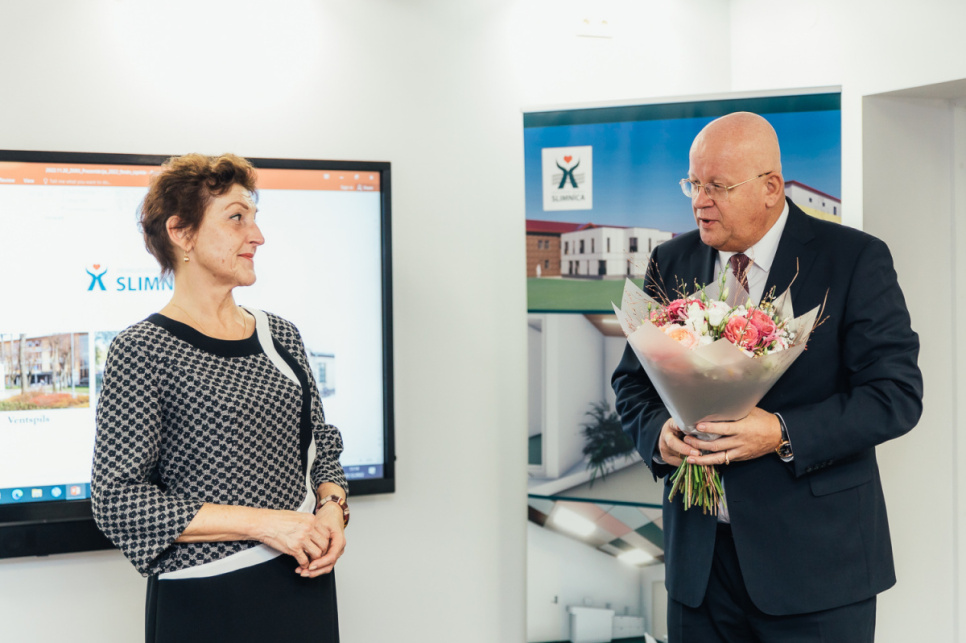 Ventspils valstspilsētas pašvaldības domes priekšsēdētāja 1. vietnieks sadarbības jautājumos Guntis Blumbergs pauda gandarījumu, ka slimnīca veiksmīgi īsteno infrastruktūras attīstības projektus, nodrošinot gan personālam, gan pacientiem mūsdienīgu vidi, telpas un aprīkojumu! ''Mēs kā pašvaldība finansējam Cilvēkresursu attīstības programmu – piešķirot jaunajiem speciālistiem pašvaldības stipendijas un dzīvokļus, lai profesionāli ārsti būtu pieejami ventspilniekiem,'' norādīja Blumbergs.