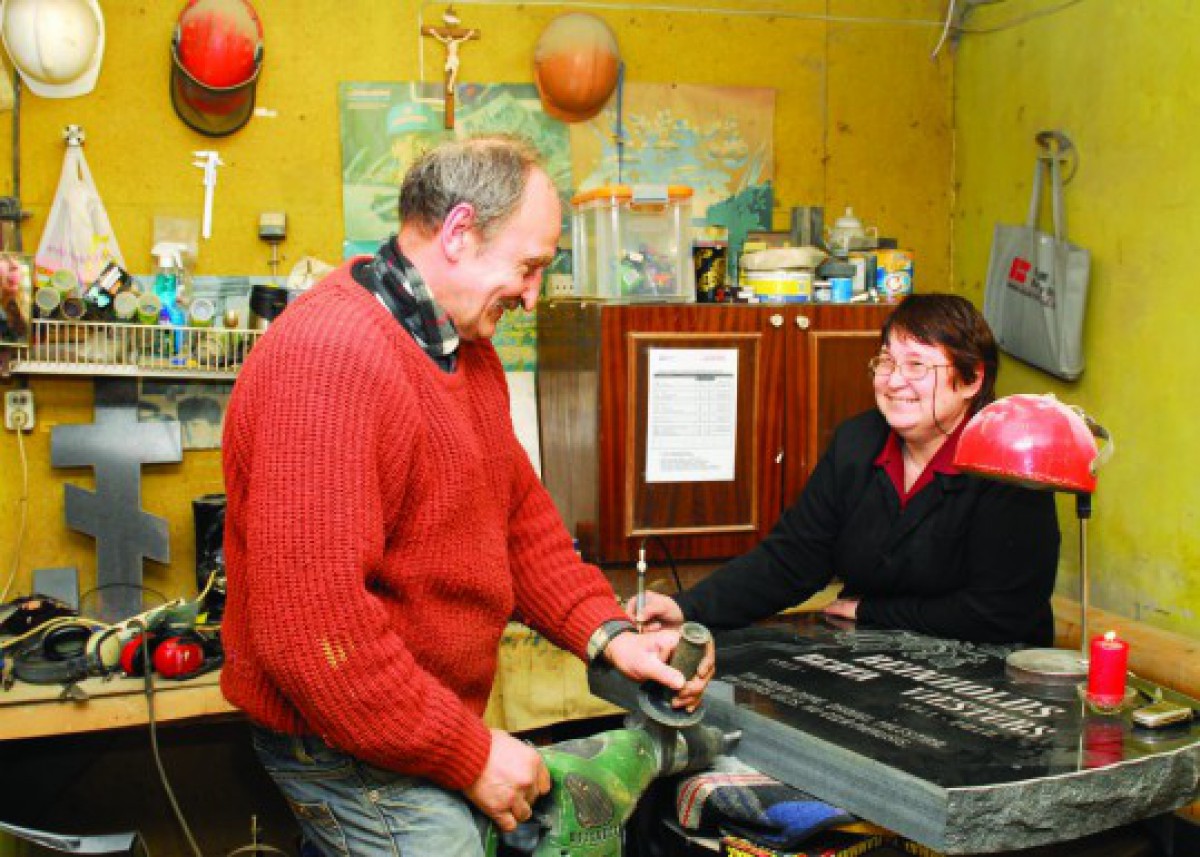 Zebērgu ģimenes biznesa stūrakmens ir kapu pieminekļi. Cietajā akmens iezī Dzintra un Rihards prot iekalt arī mājvārdus un uzņēmumu nosaukumus, tomēr ikdienā viņi jau 40 gadus izgatavo kapu pieminekļus un apmalītes.